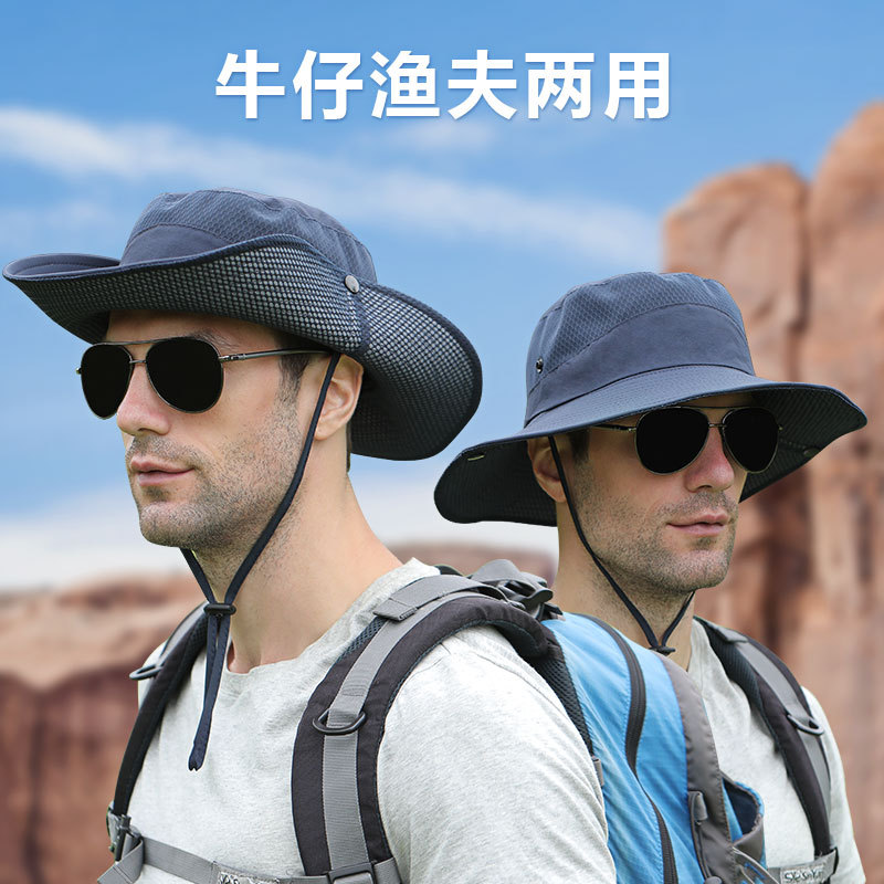 夏季渔夫帽子男士户外骑行登山钓鱼防晒帽太阳帽速干透气防紫外线