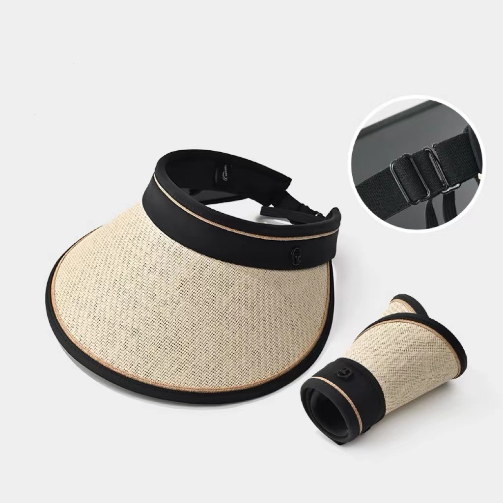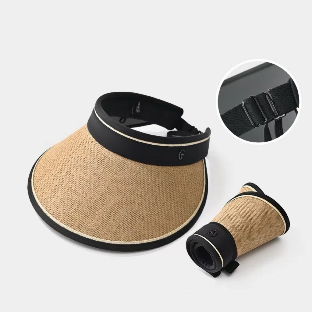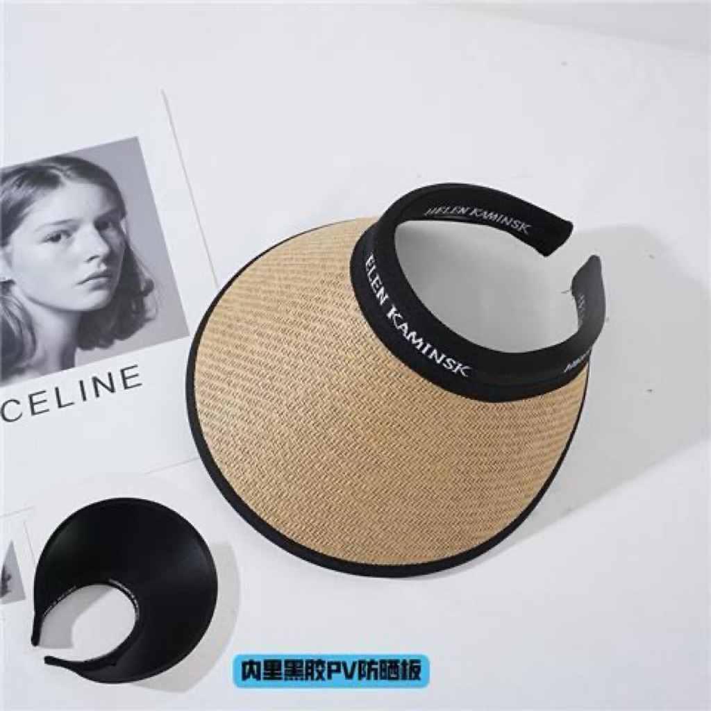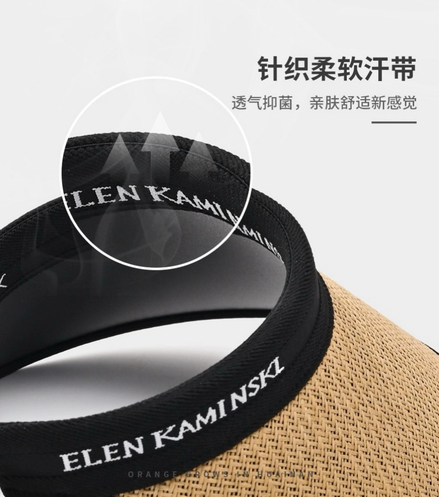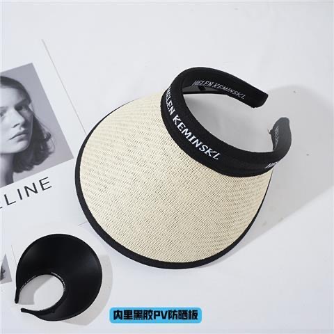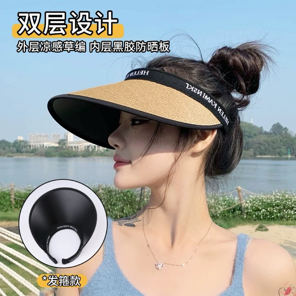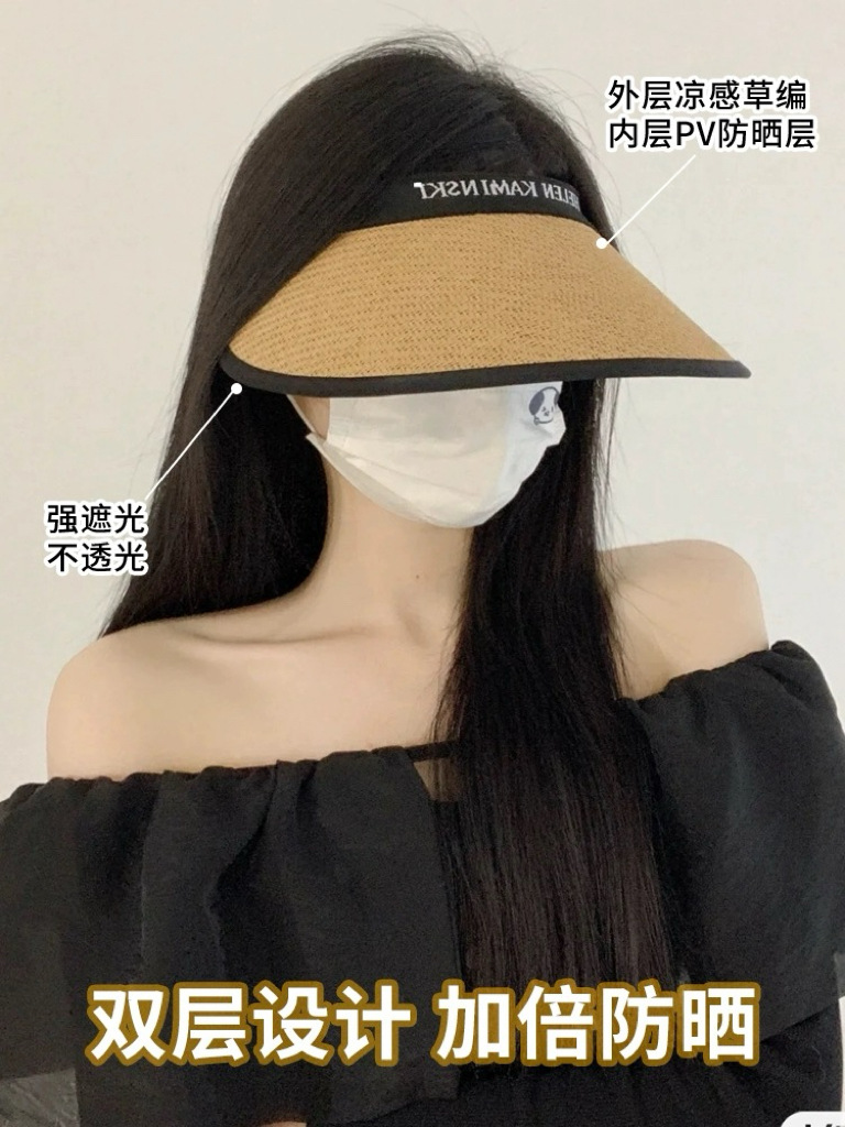 夏季大帽檐空顶防晒帽女防紫外线太阳帽大檐遮脸发箍字母草编帽