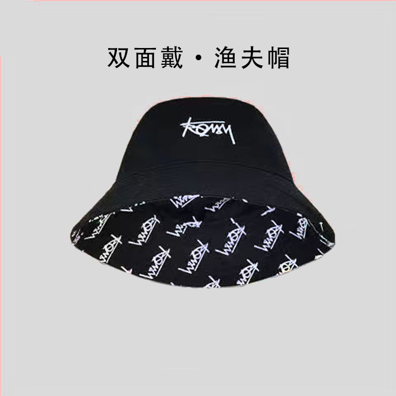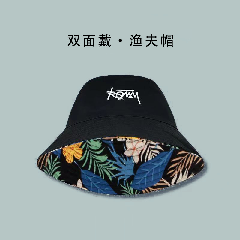 双面大头围字母涂鸦渔夫帽男潮遮阳帽防晒太阳帽个性夏威夷男帽子