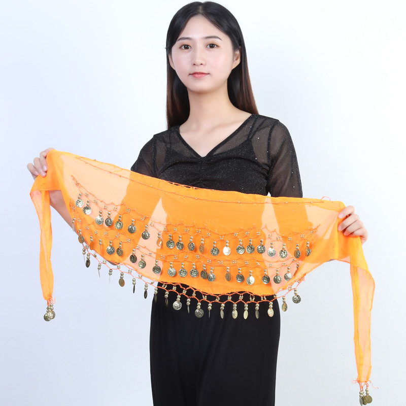现货批发肚皮舞腰链72金币腰封印度舞三层雪纺腰带臀巾配饰一代发