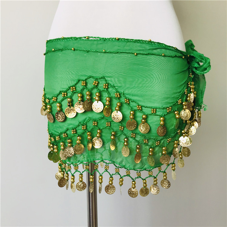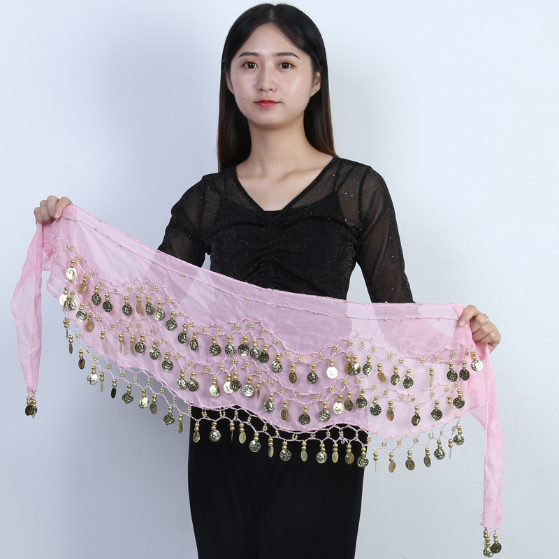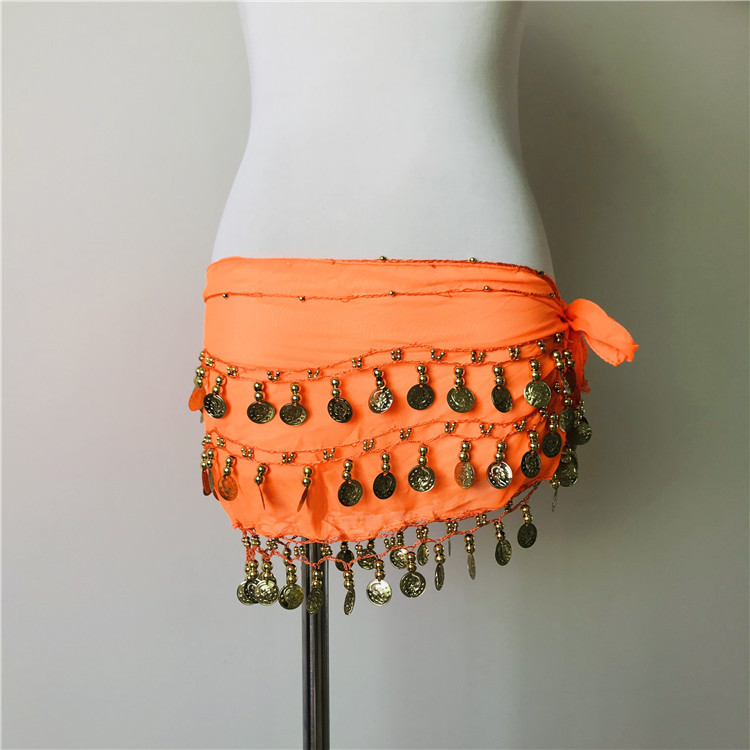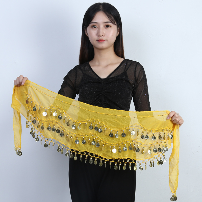 现货供应98币肚皮舞腰链雪纺三层金币腰带印度舞练习演出臀巾围巾
