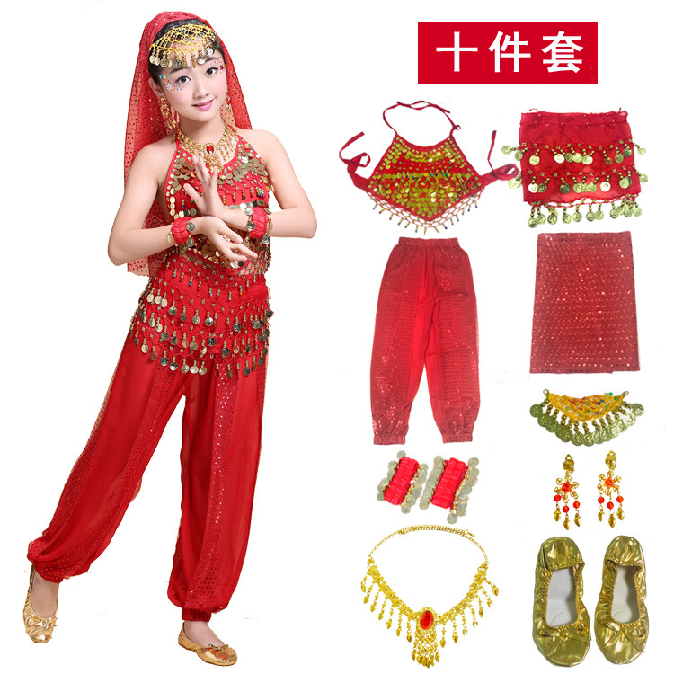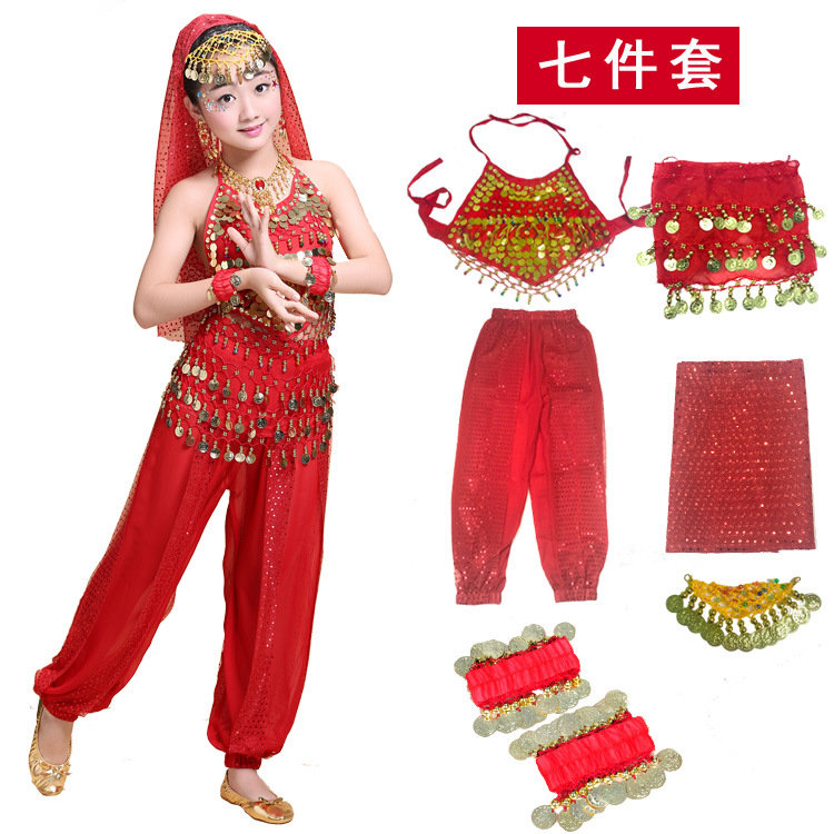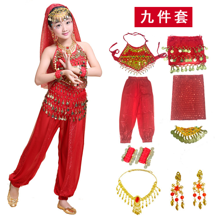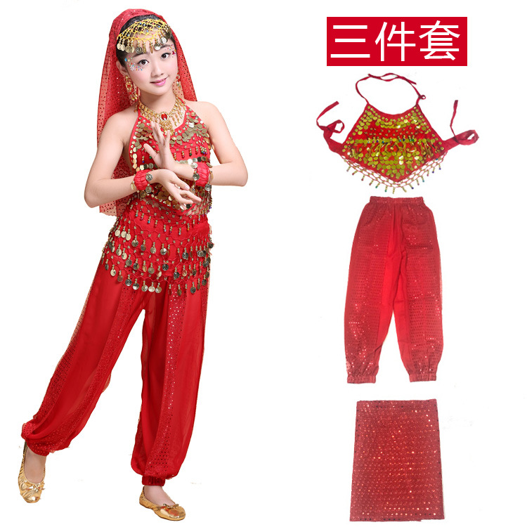 印度舞蹈服装女儿童 新款少儿肚皮舞演出服套装 新疆舞天竺表演服