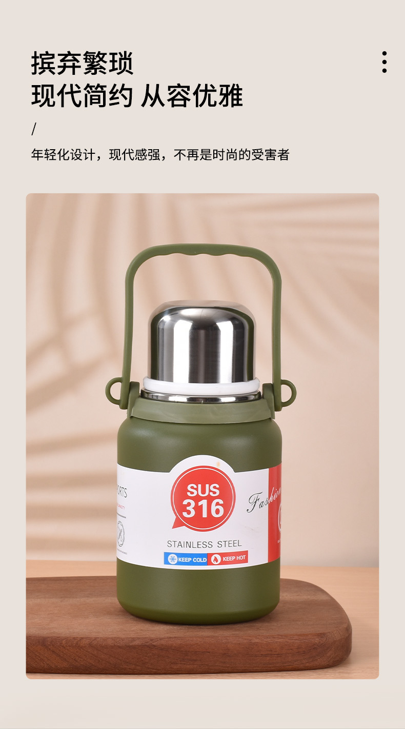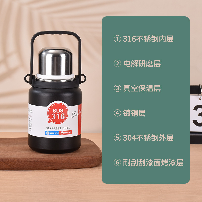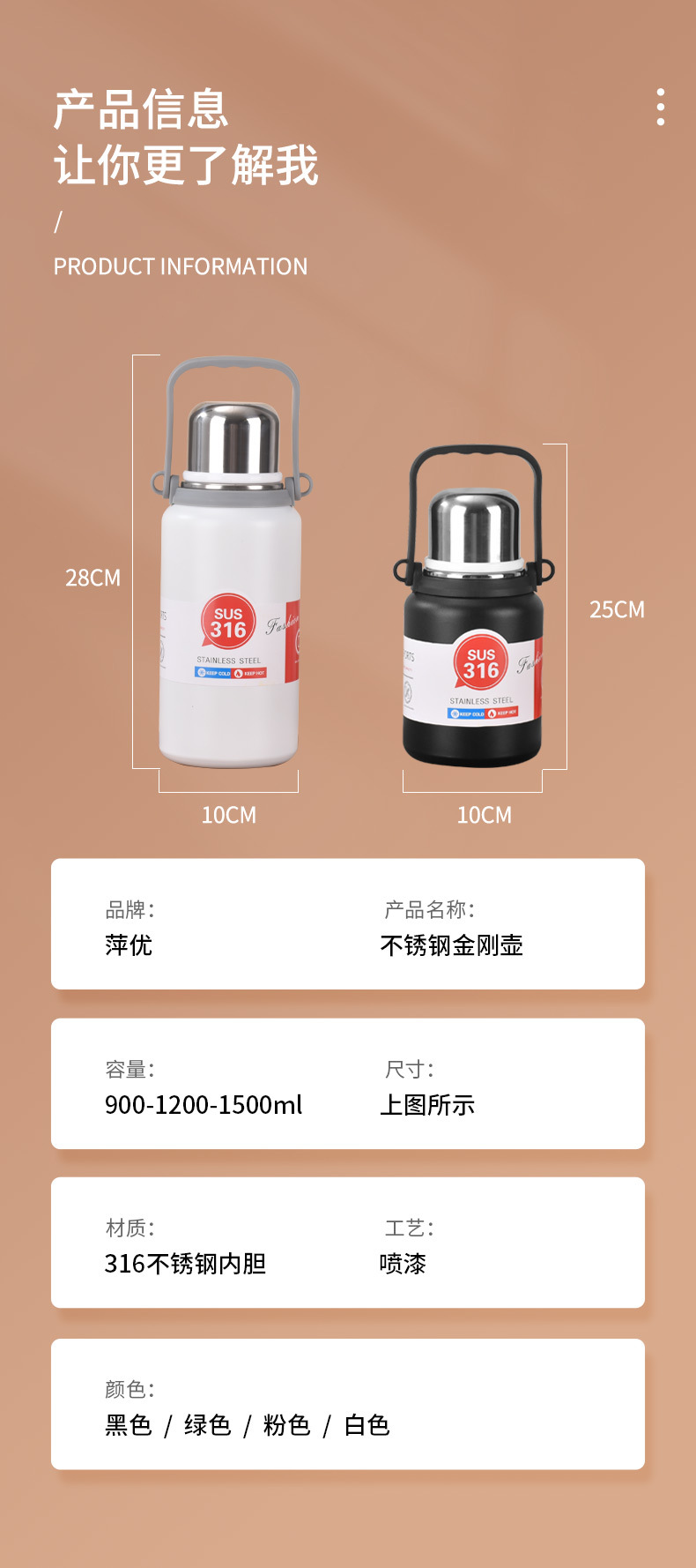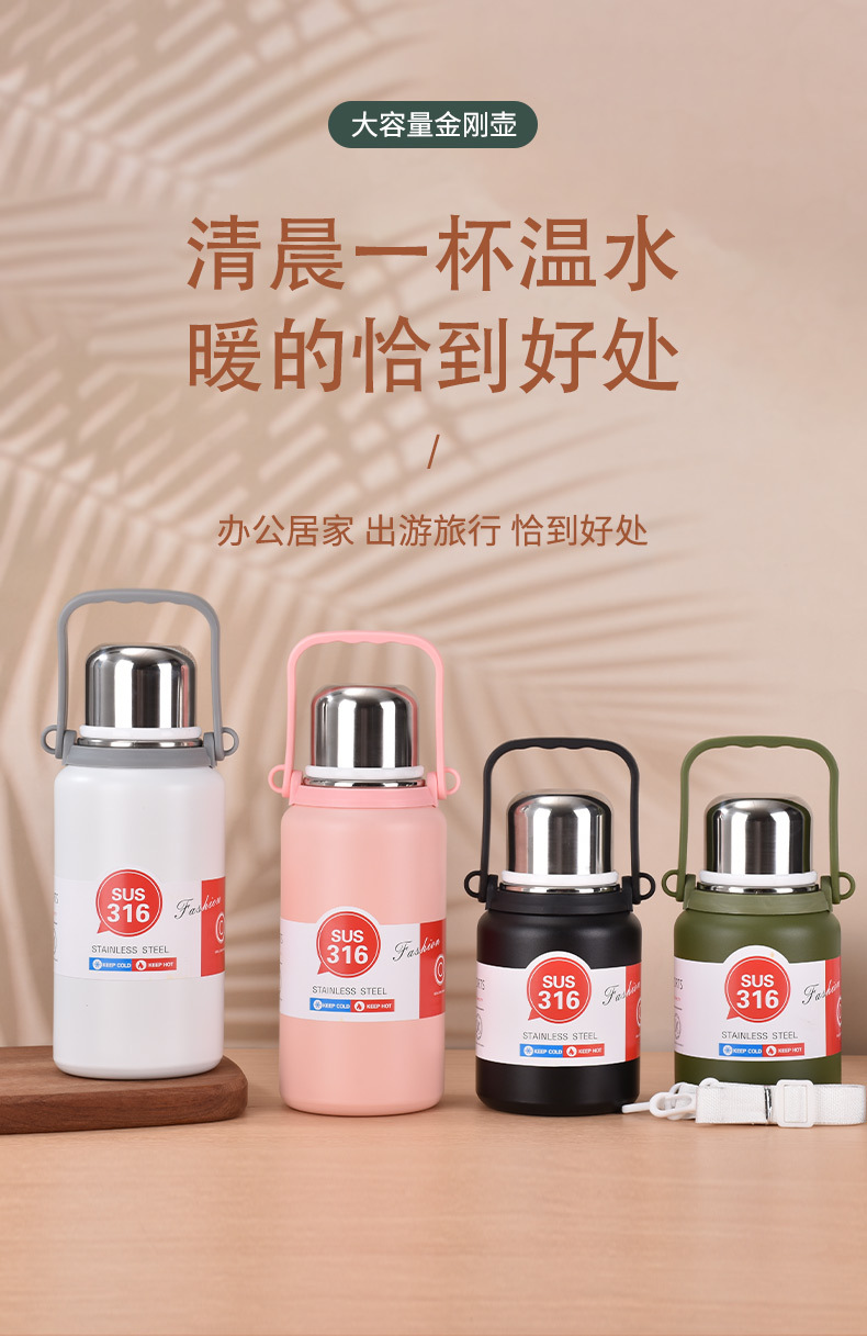网红新款316不锈钢金刚壶保温杯大容量便携提手保温壶带提绳水壶