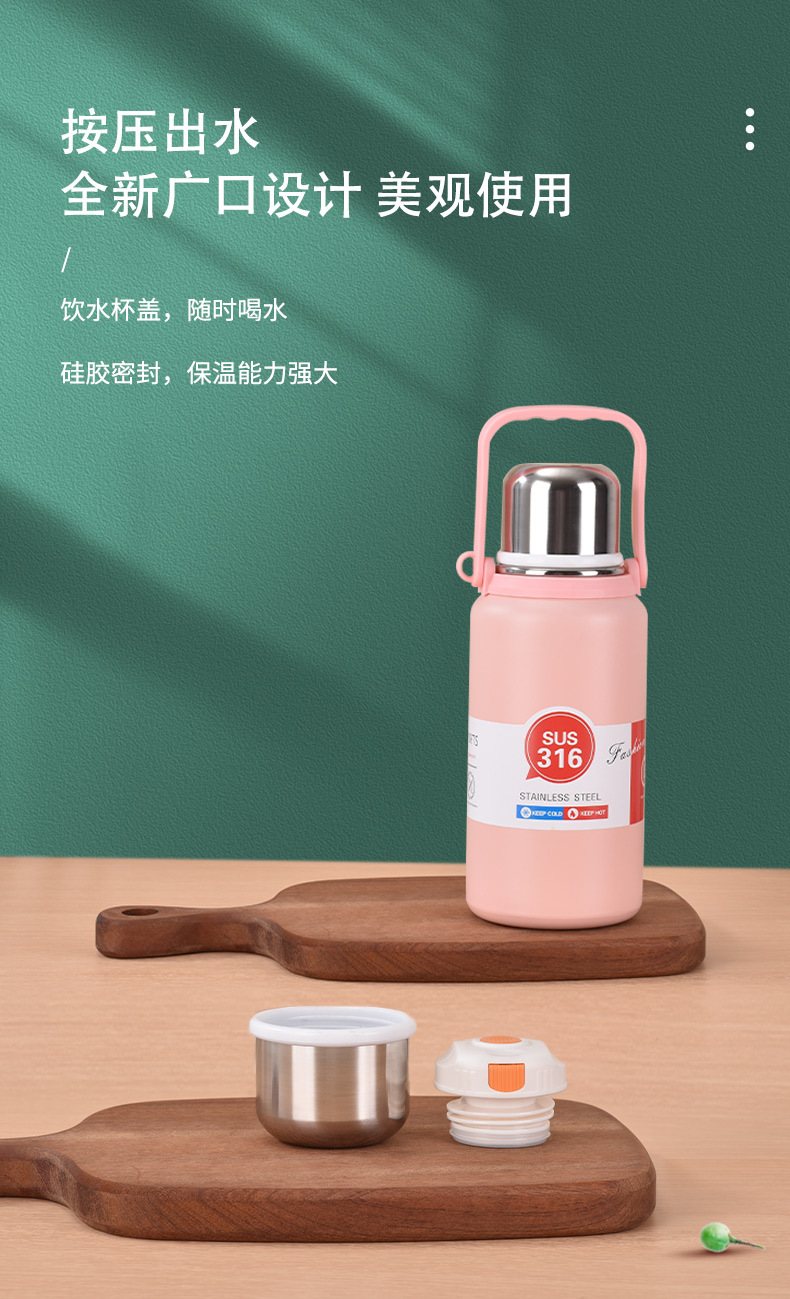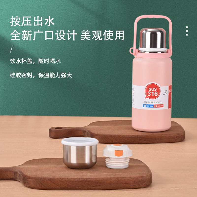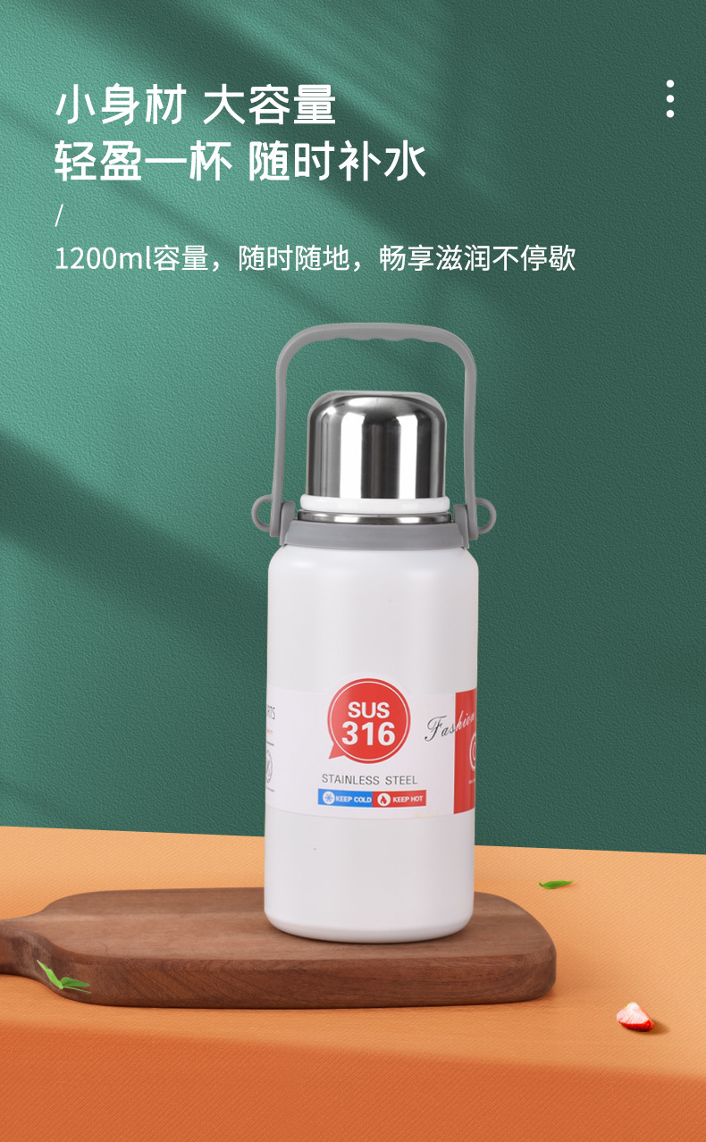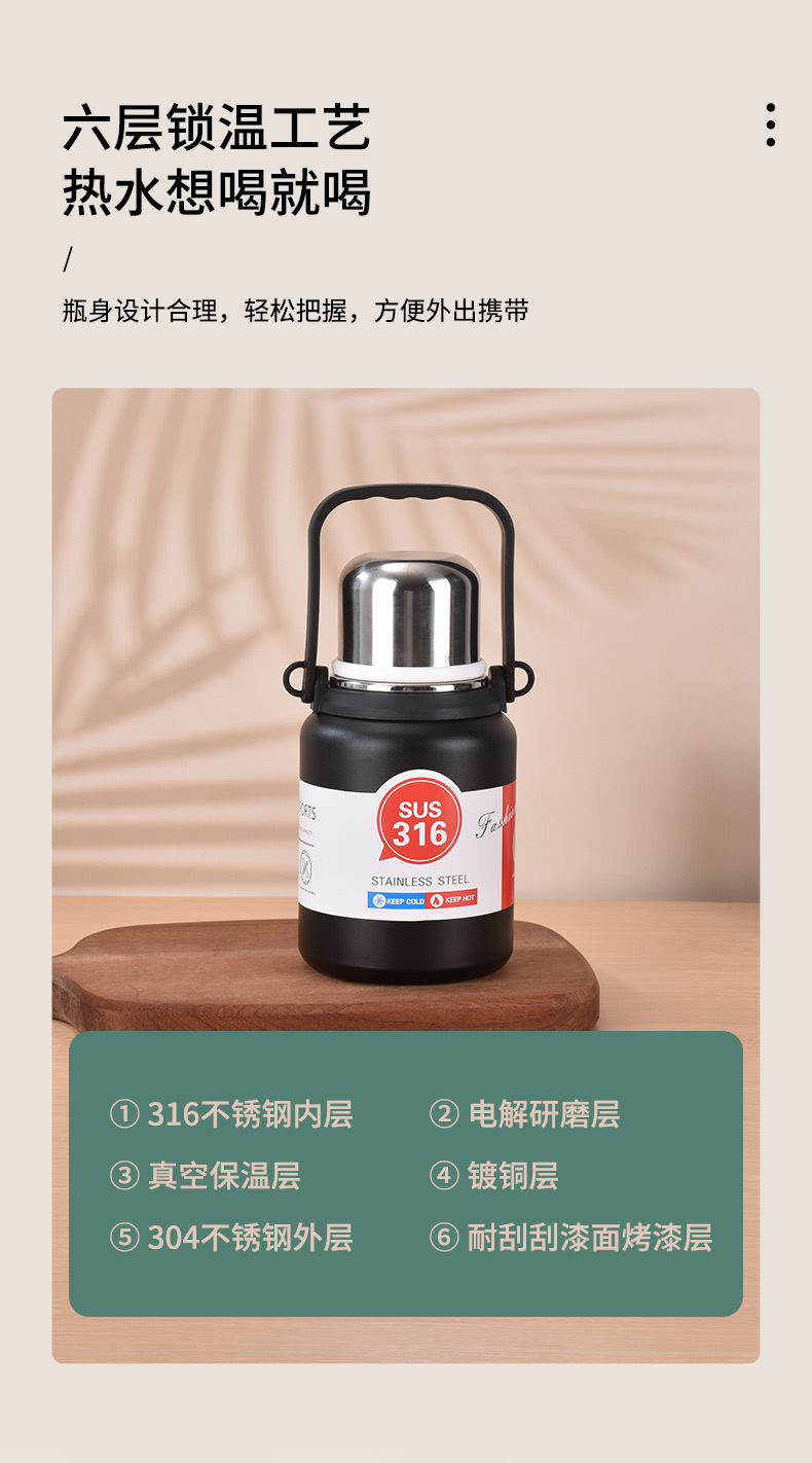 网红新款316不锈钢金刚壶保温杯大容量便携提手保温壶带提绳水壶