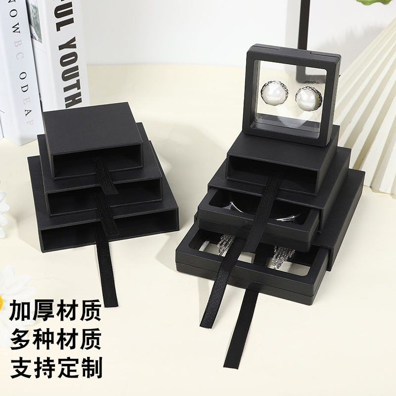 透明pe膜抽屉盒饰品盒手链耳环戒指防氧化黑色包装盒抽拉式首饰盒