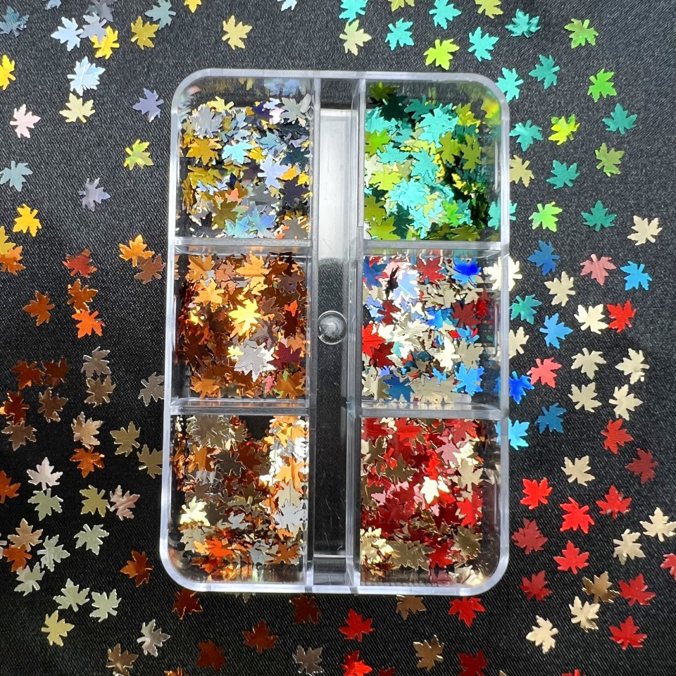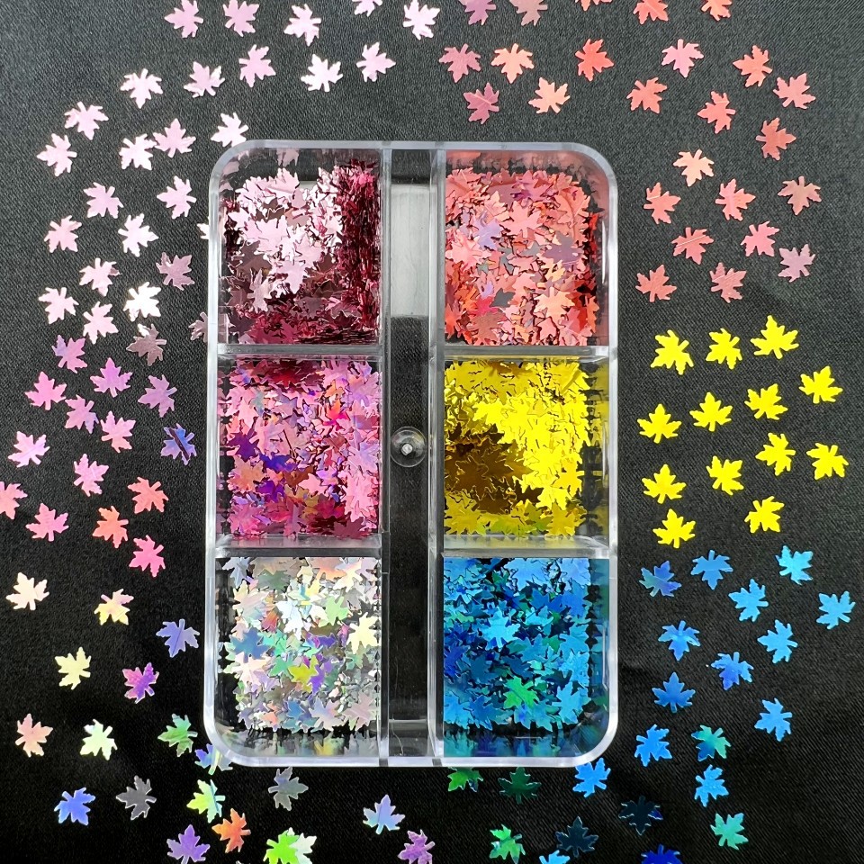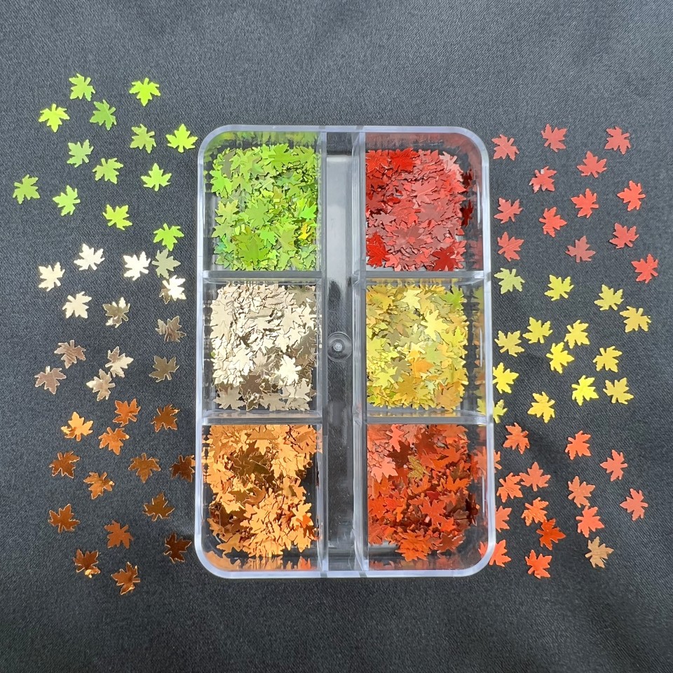 6格盒装24色金属色枫叶亮片镭射色树叶 2023秋季感恩节美甲亮片