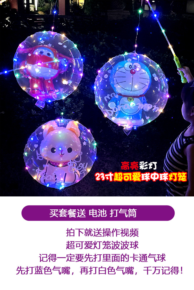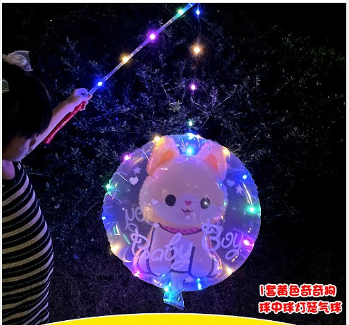 新款灯笼球中球发光气球广场夜市地摊火爆闪光波波球卡通动物汽球