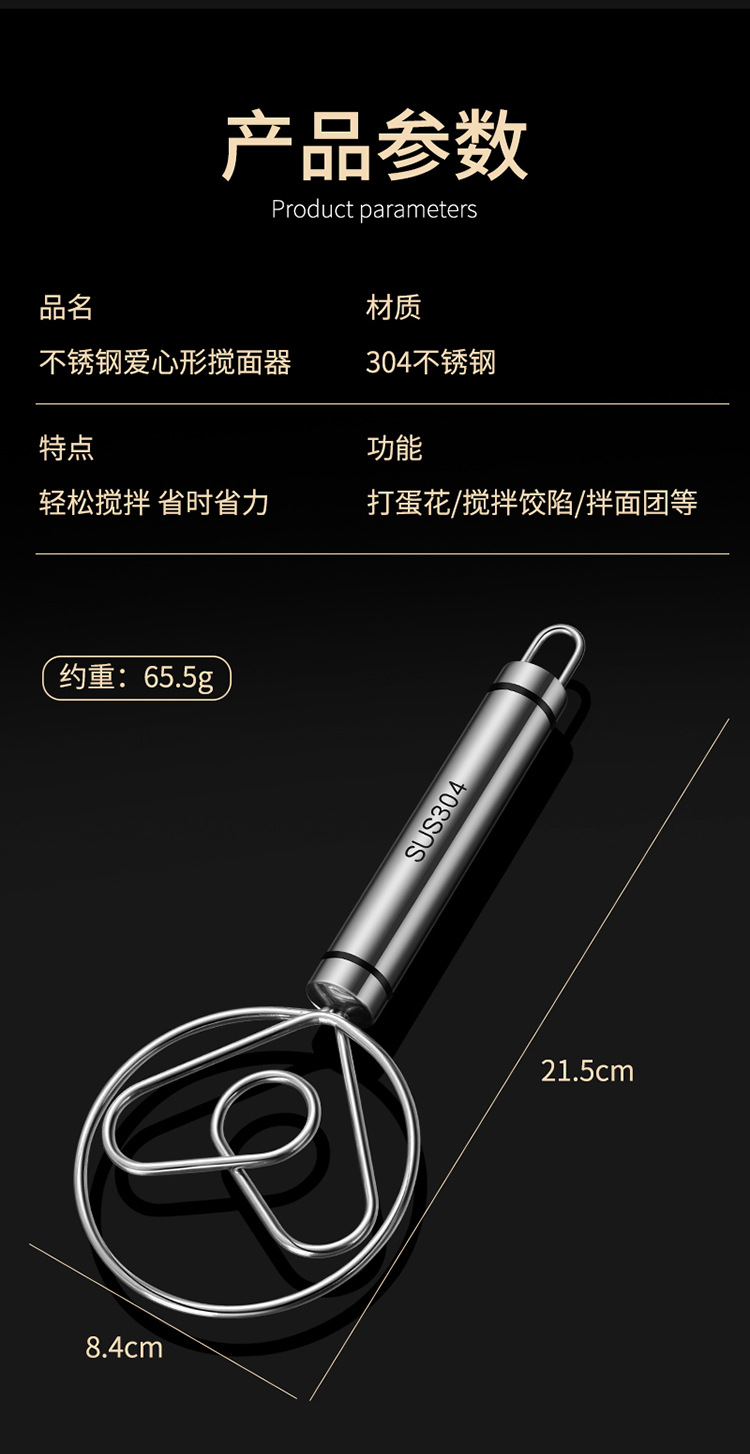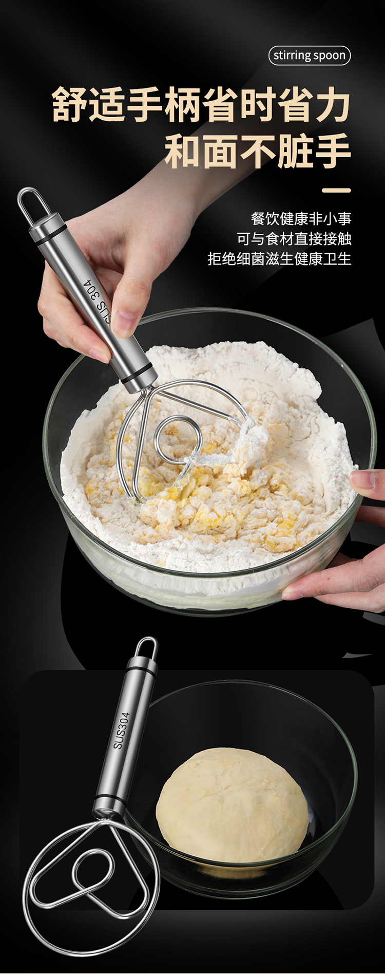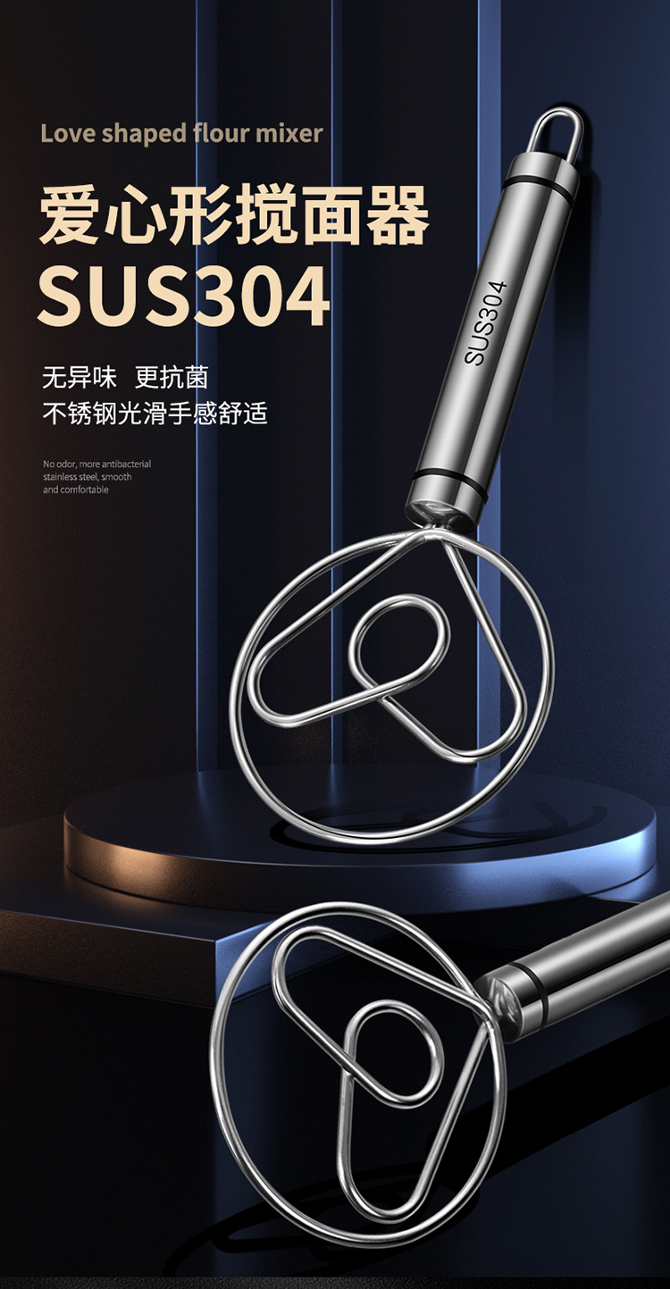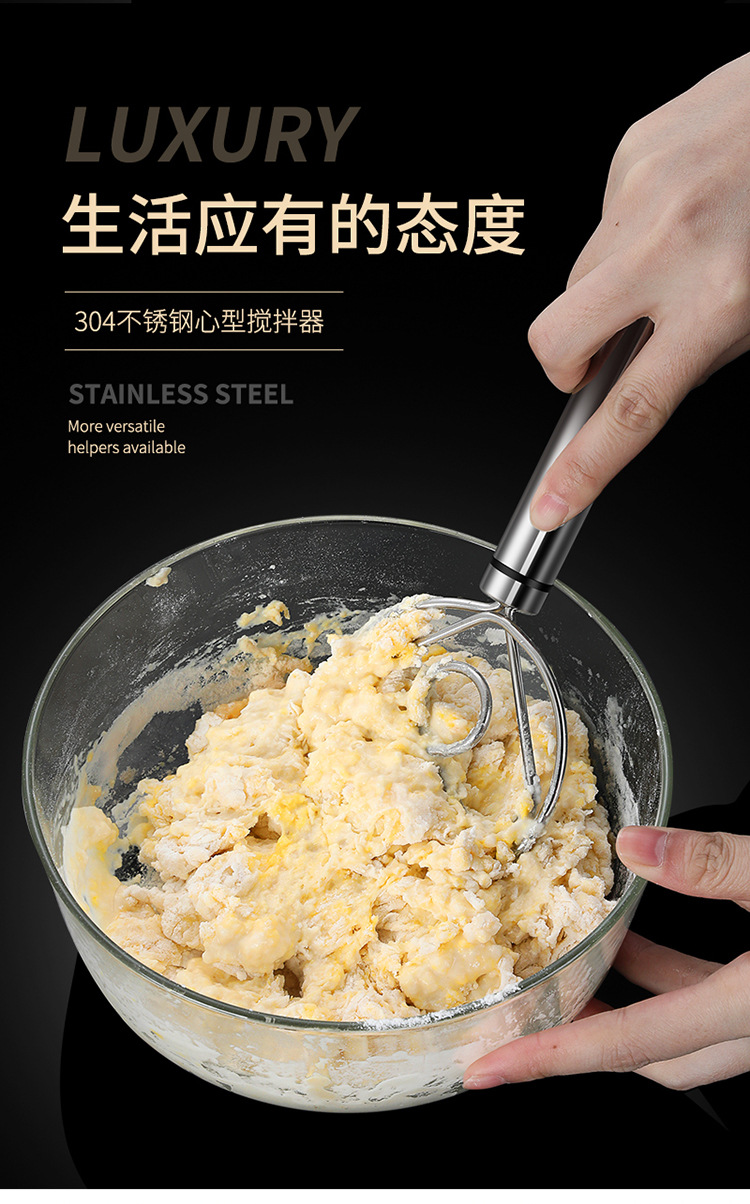 业德 304不锈钢搅拌棒面粉手动面团打粉和面神器家用心形捣泥器