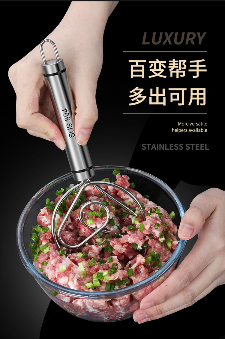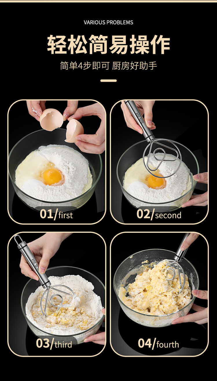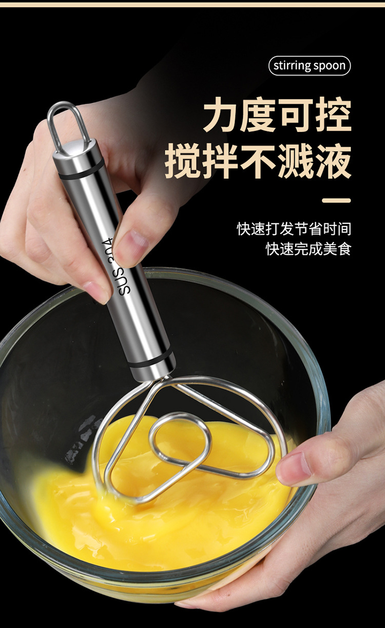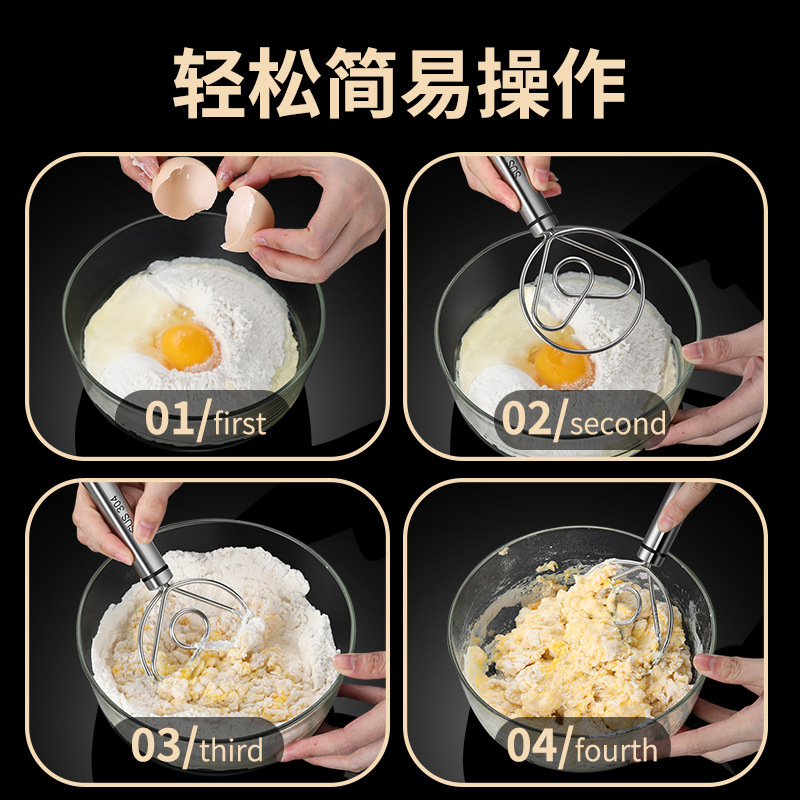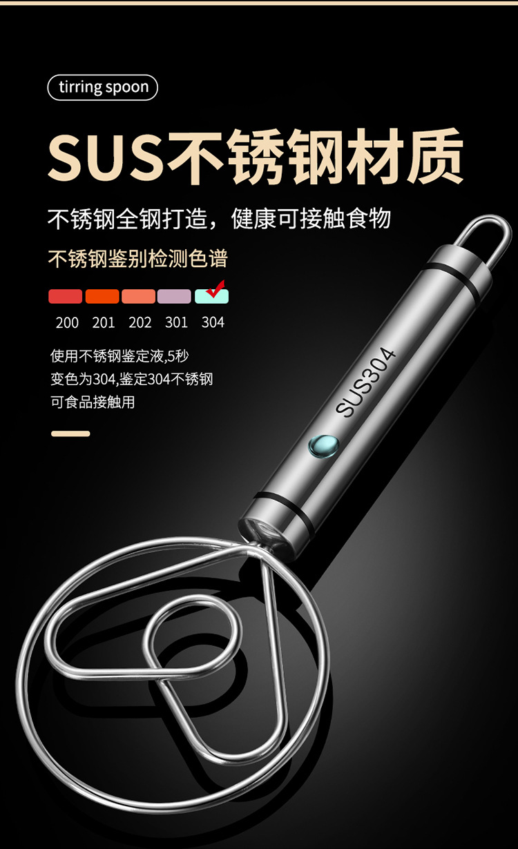 业德 304不锈钢搅拌棒面粉手动面团打粉和面神器家用心形捣泥器