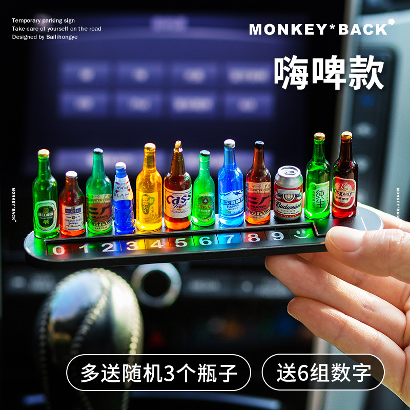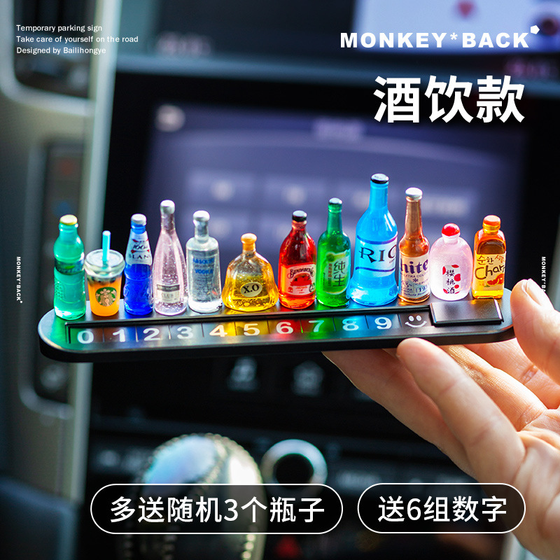 diy小酒瓶挪车电话牌车用汽车临时停车号码牌车载停靠牌