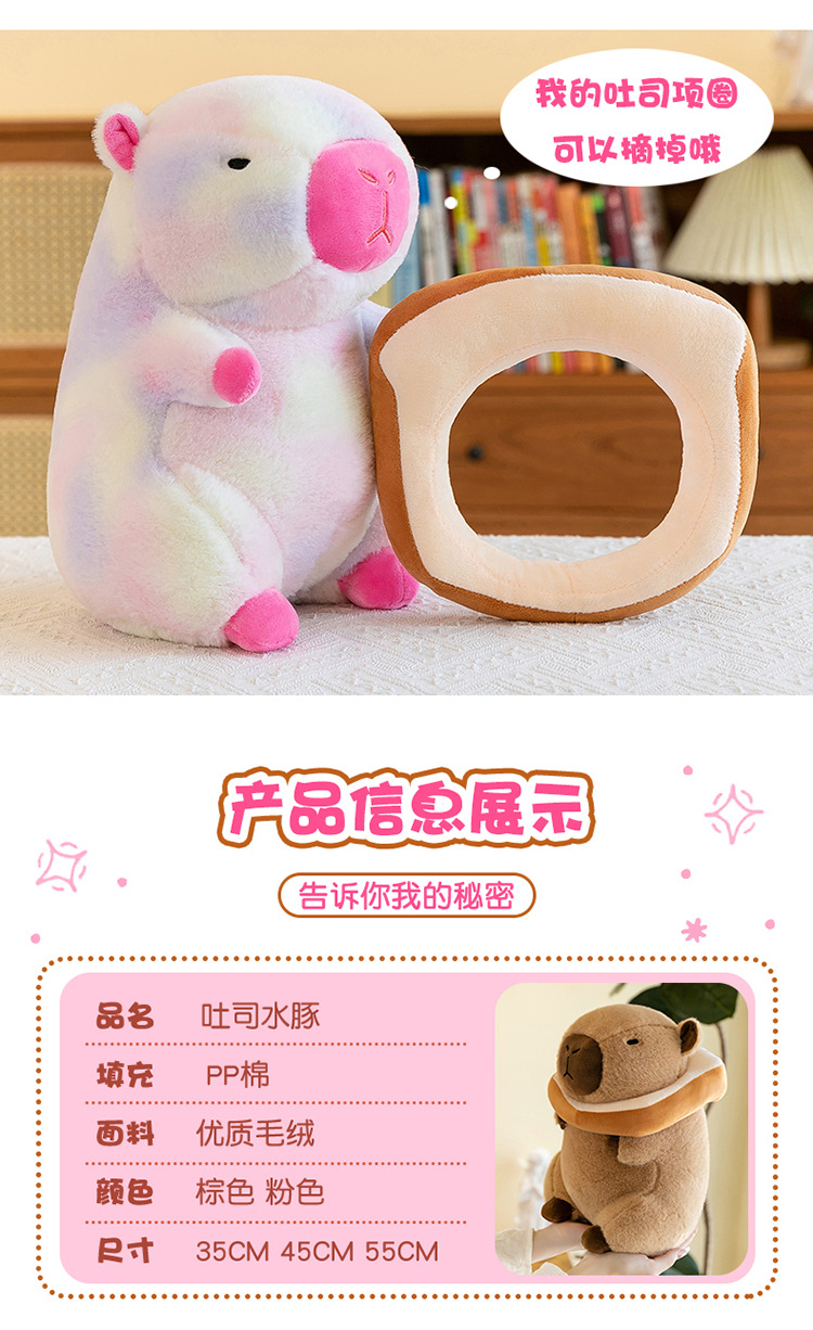 跨境炫彩吐司水豚毛绒玩具公仔卡皮巴拉玩偶娃娃厂家批发