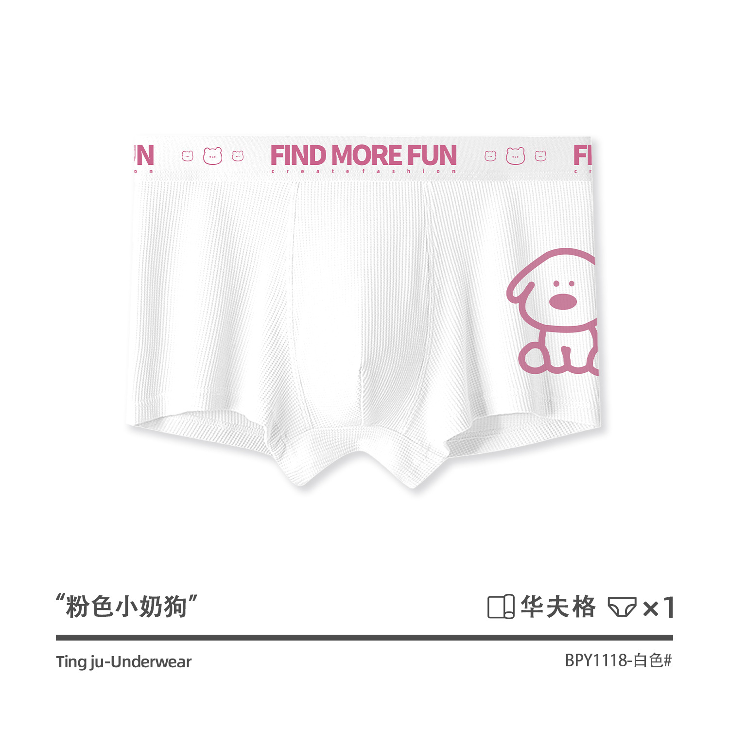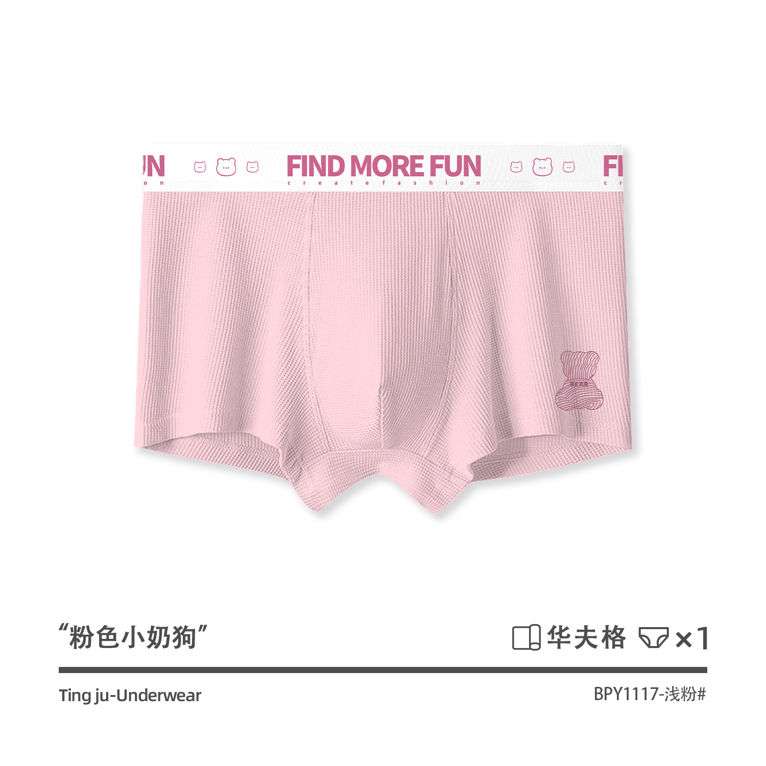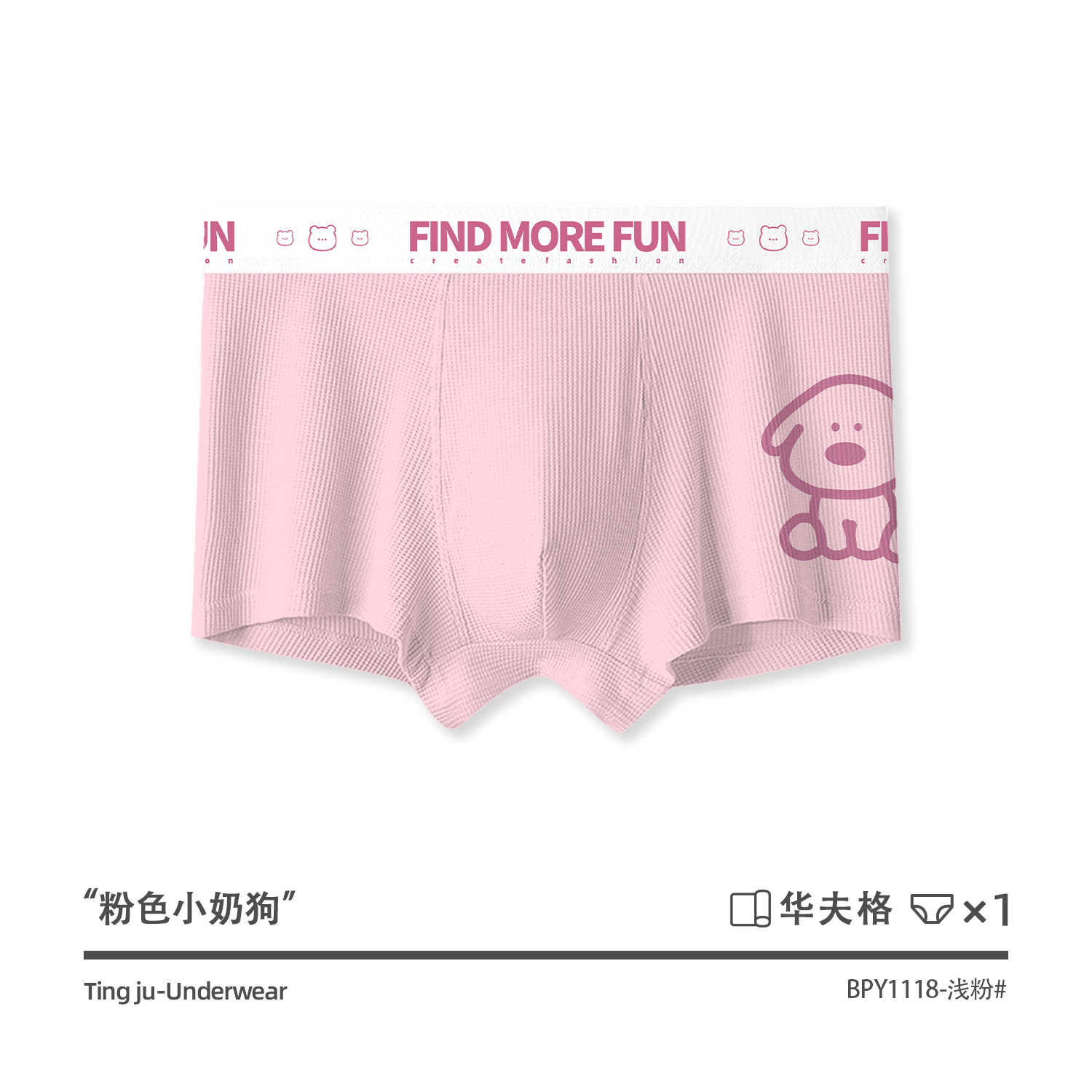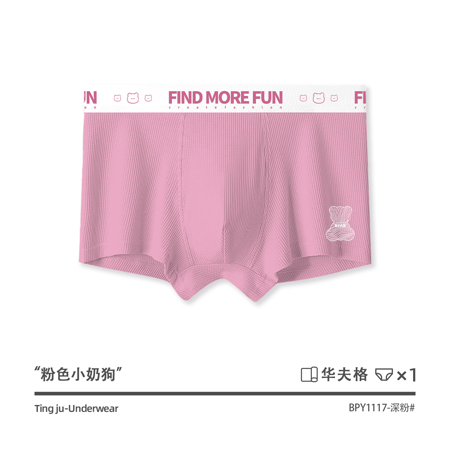 男士内裤新款华夫格粉色潮流印花透气舒适抑小奶狗青少年内裤男