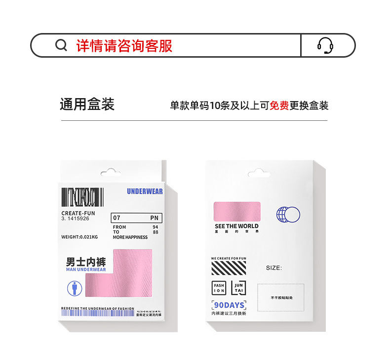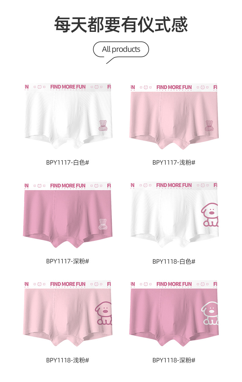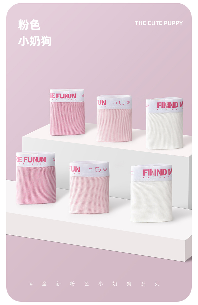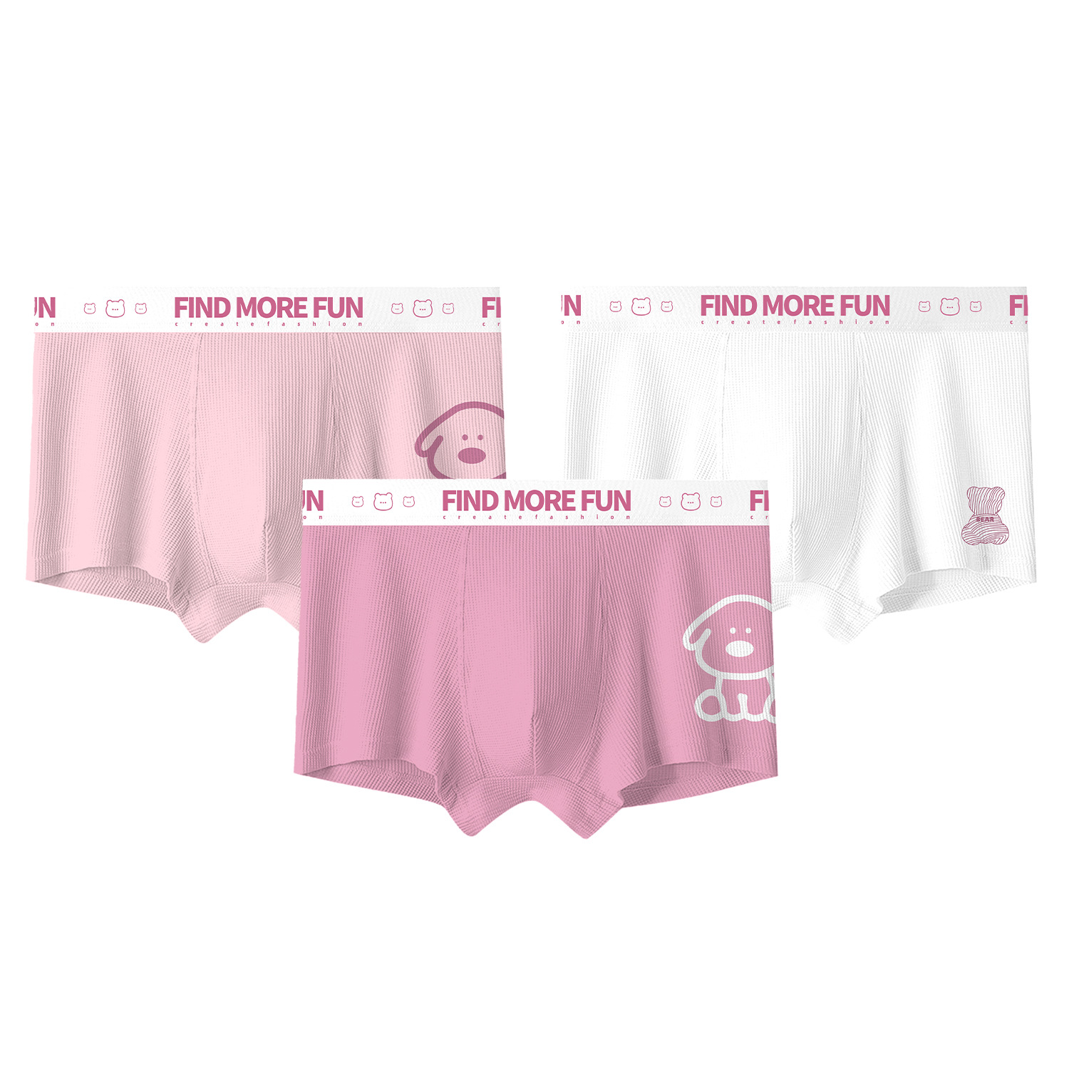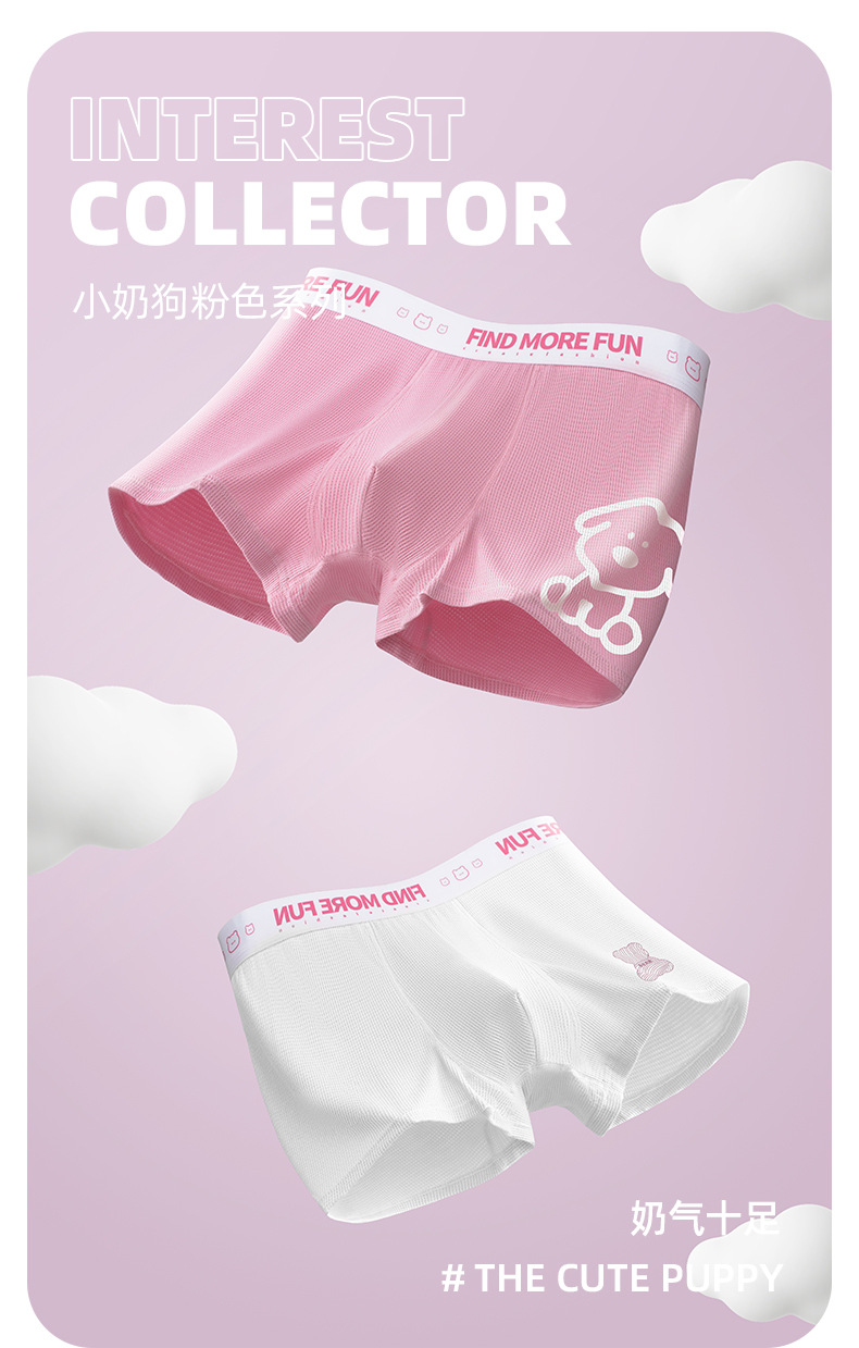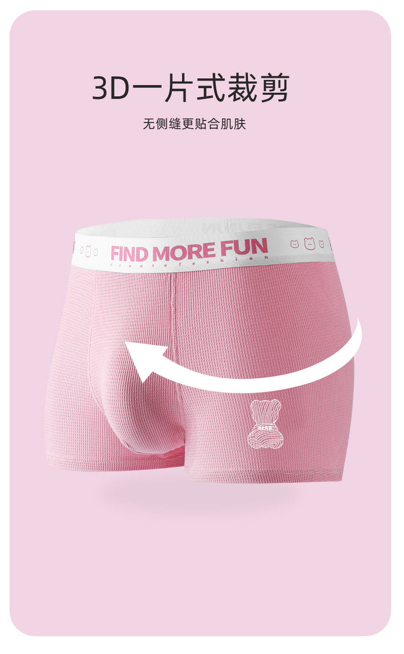 男士内裤新款华夫格粉色潮流印花透气舒适抑小奶狗青少年内裤男