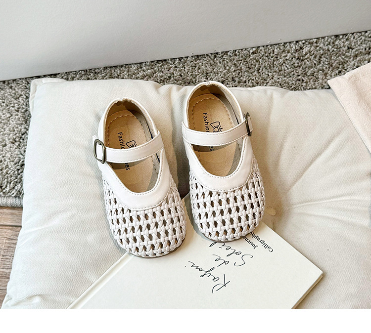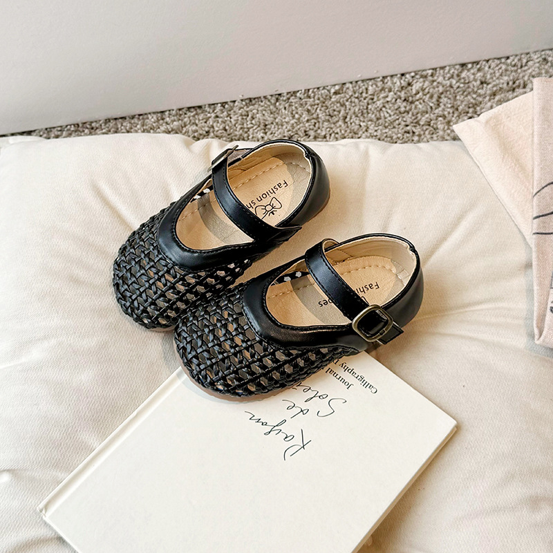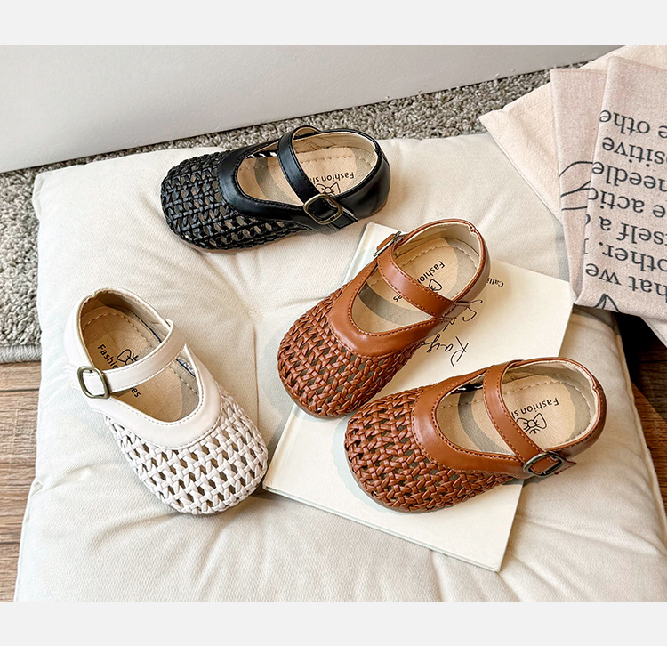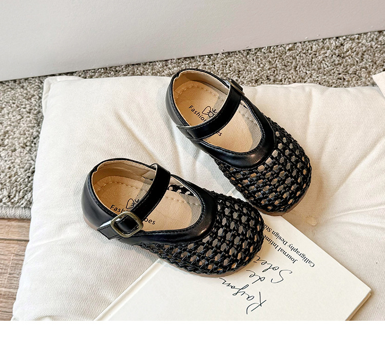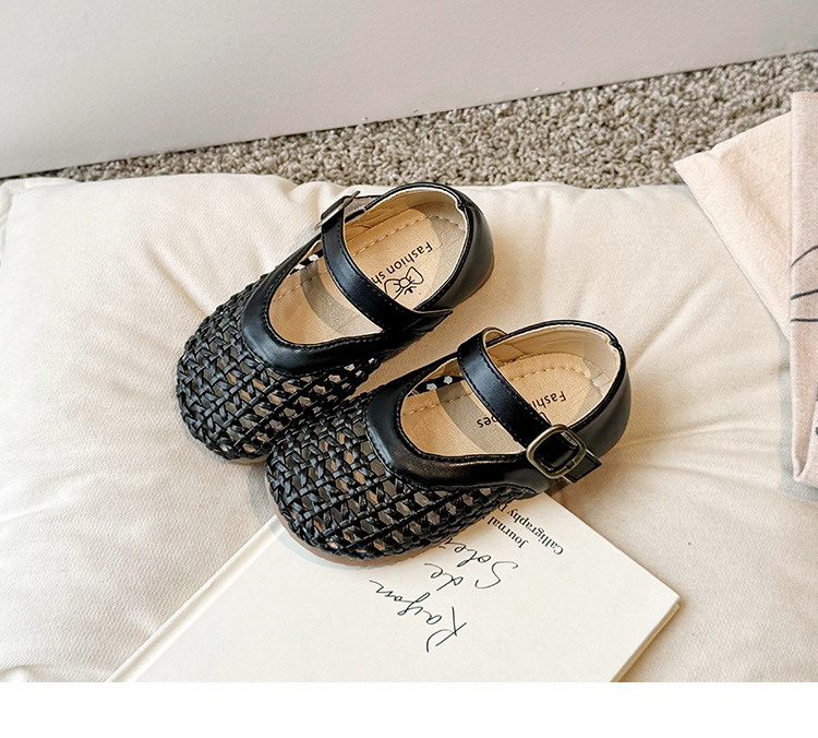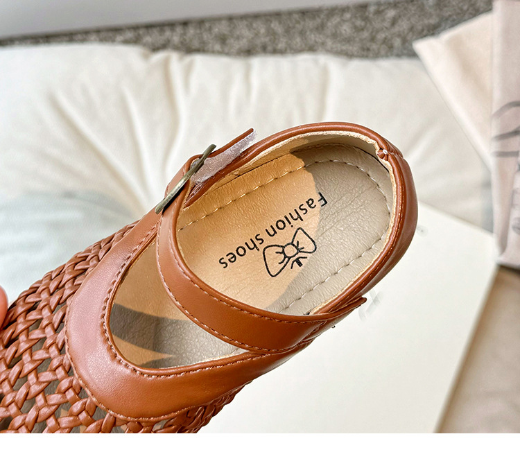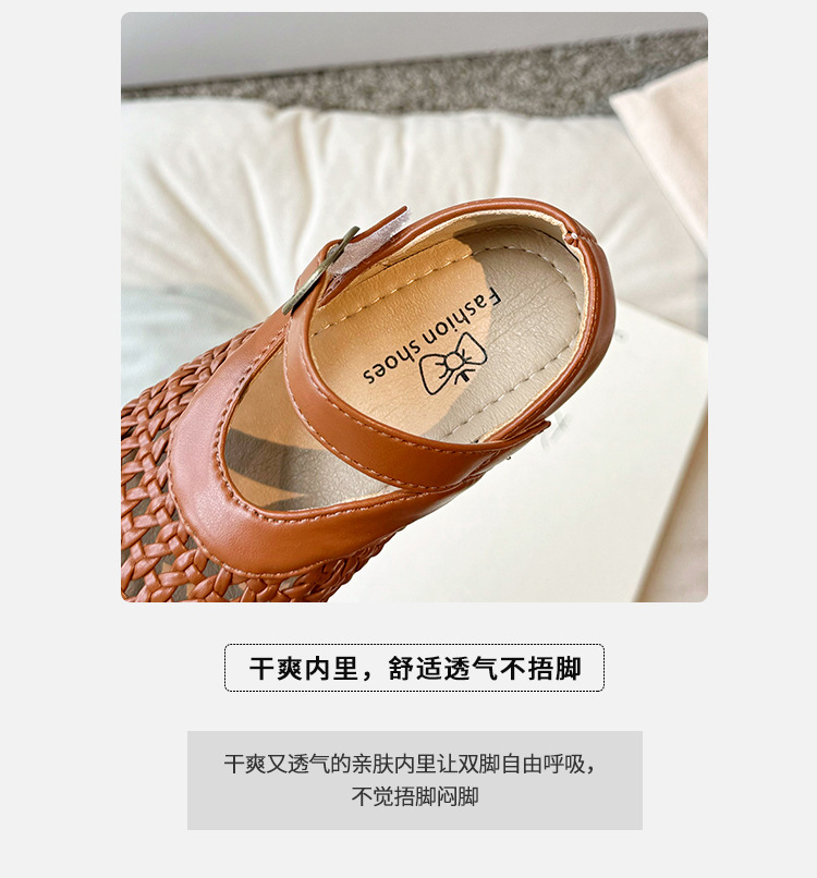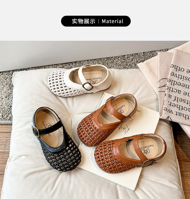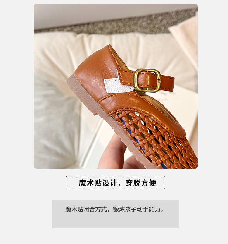 儿童编织镂空凉鞋2024年夏季新款女童小中大童纯色百搭包头凉鞋潮