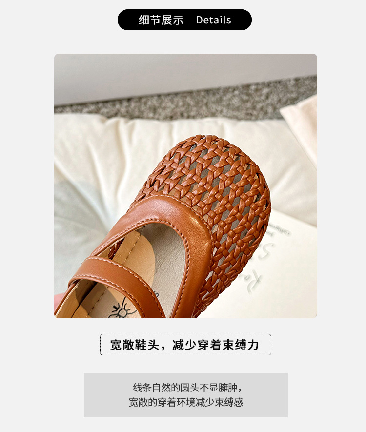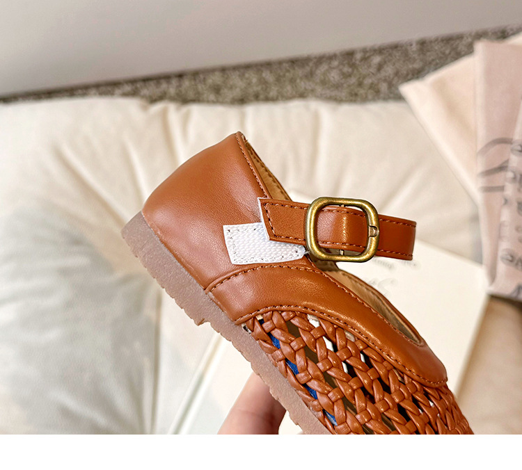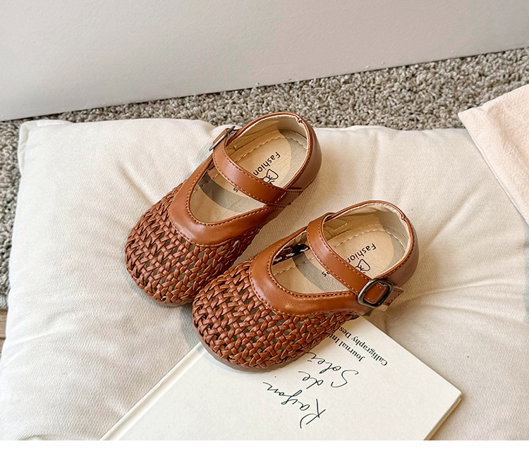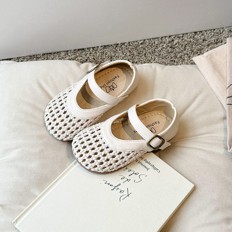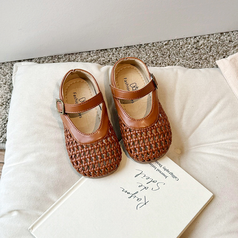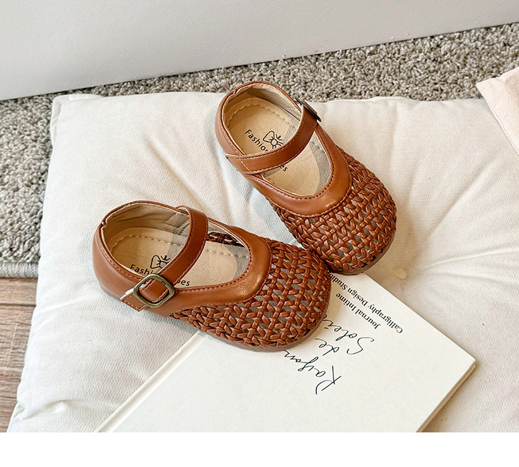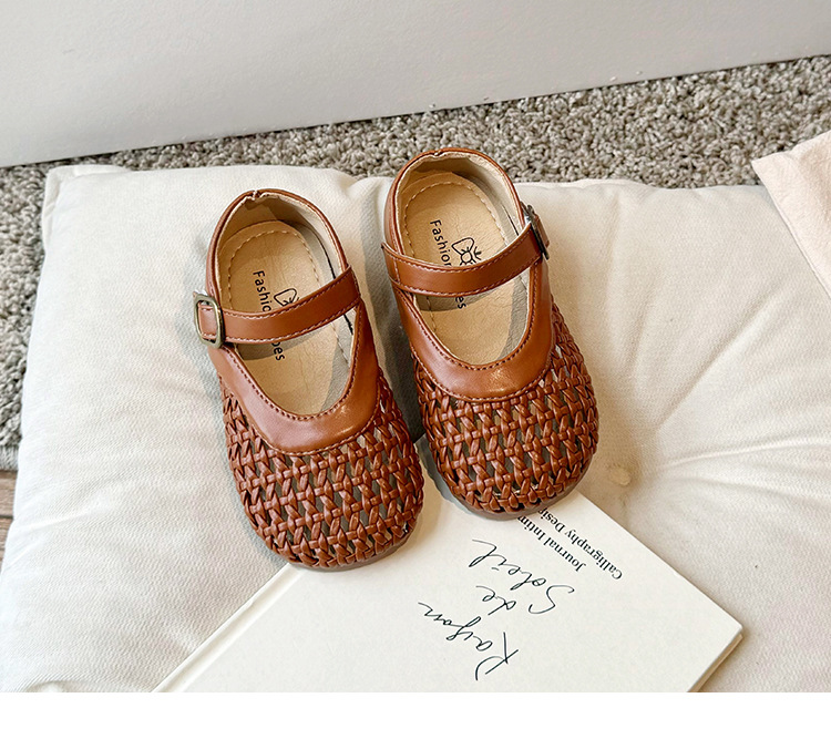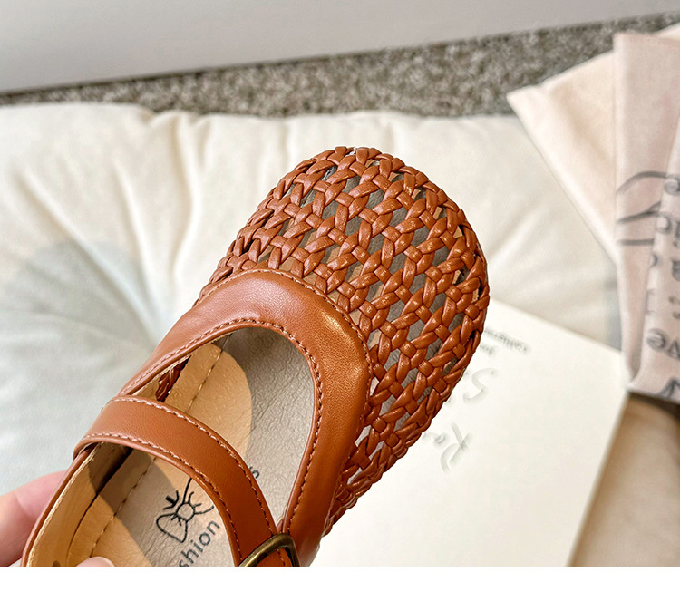 儿童编织镂空凉鞋2024年夏季新款女童小中大童纯色百搭包头凉鞋潮