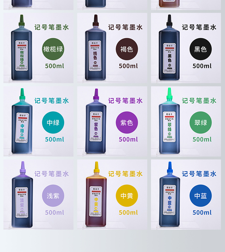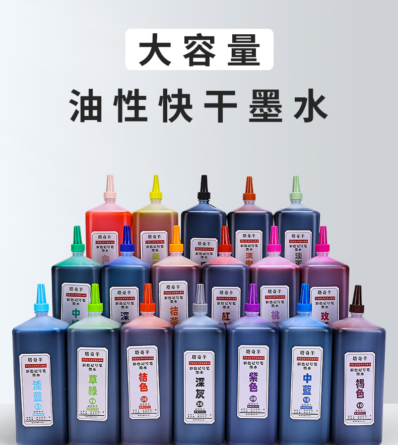 记号笔墨水补充液40色马克笔彩色油性笔墨水儿童绘画500ml大容量