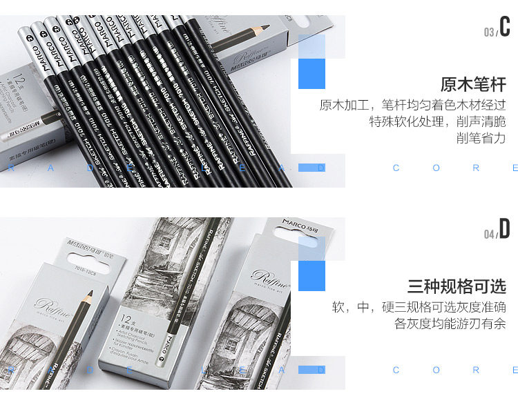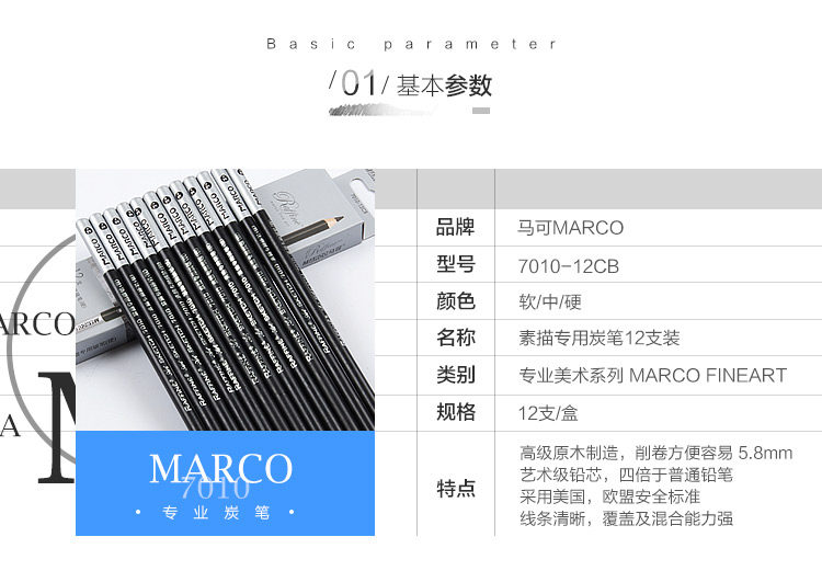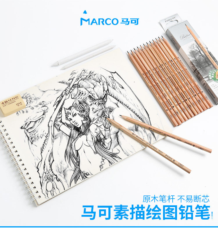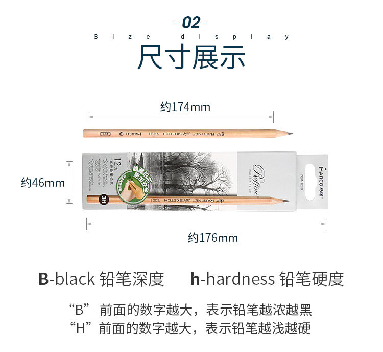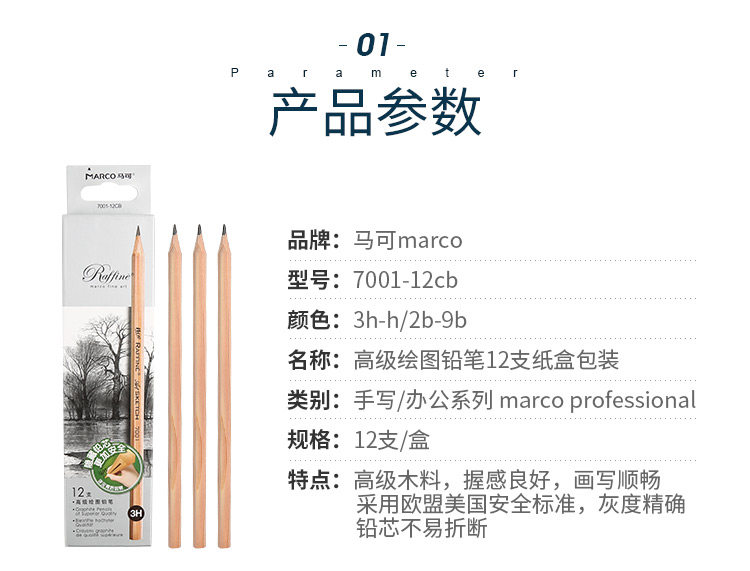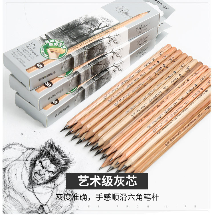 马可铅笔7001专业美术绘画用品原木素描2B铅笔炭笔HB学生素描套装
