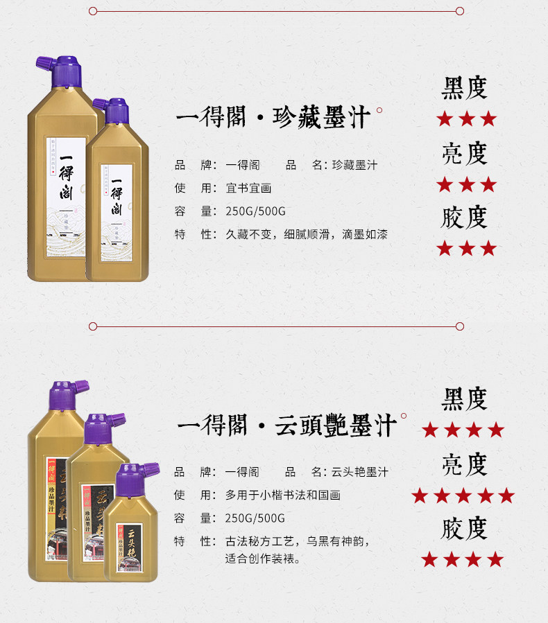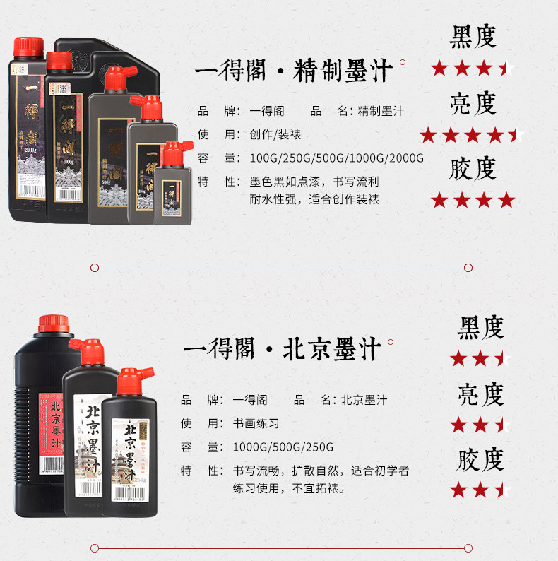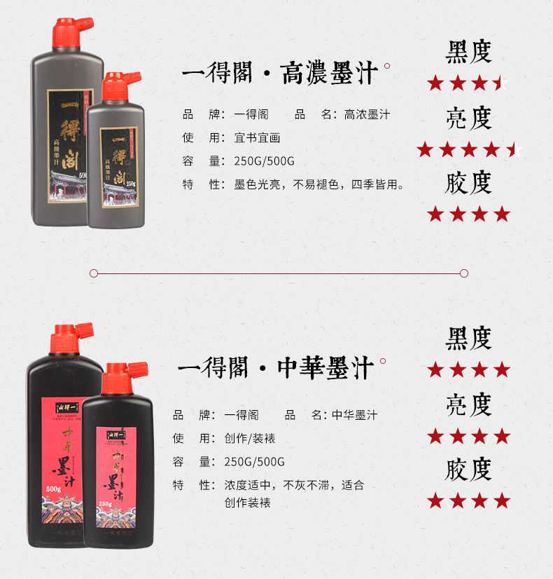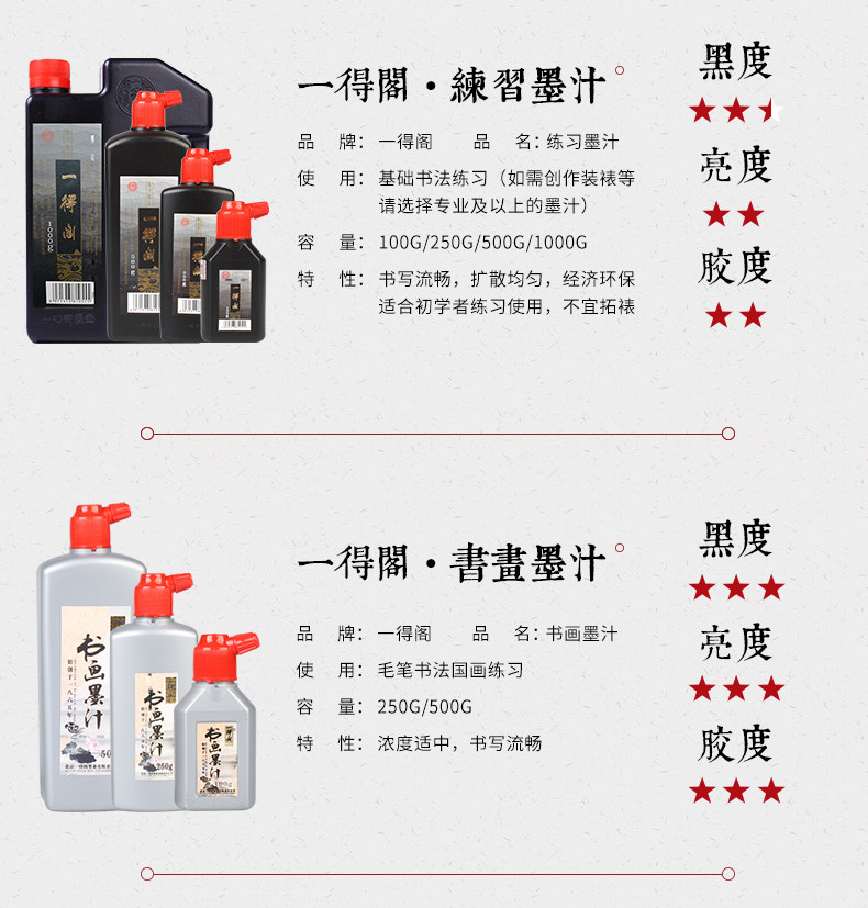正品一得阁墨水500g书法专用墨汁学生练习250克大瓶1000g国画书画