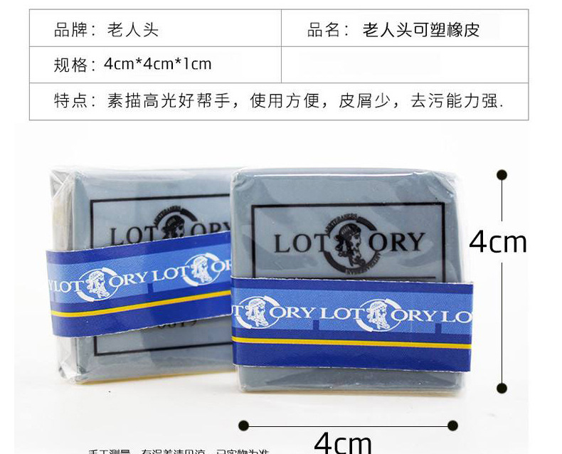 | 老人头可塑性橡皮擦1块(18块/盒) | USD $0.0 | 6792 piece available |