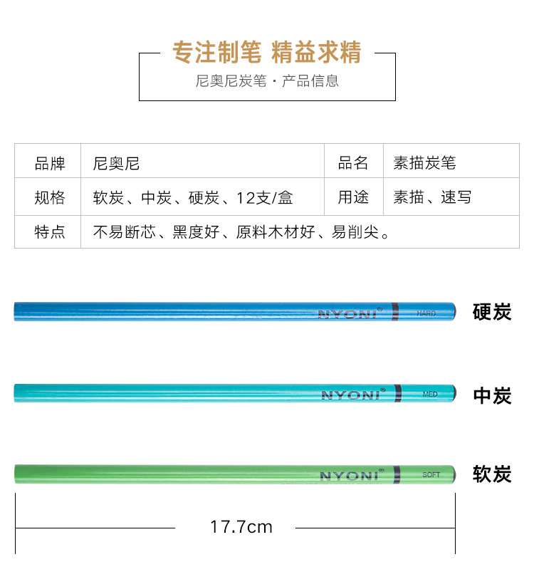 尼奥尼炭笔NYONI美术素描速写专用炭笔软中硬专业碳笔绘画用品