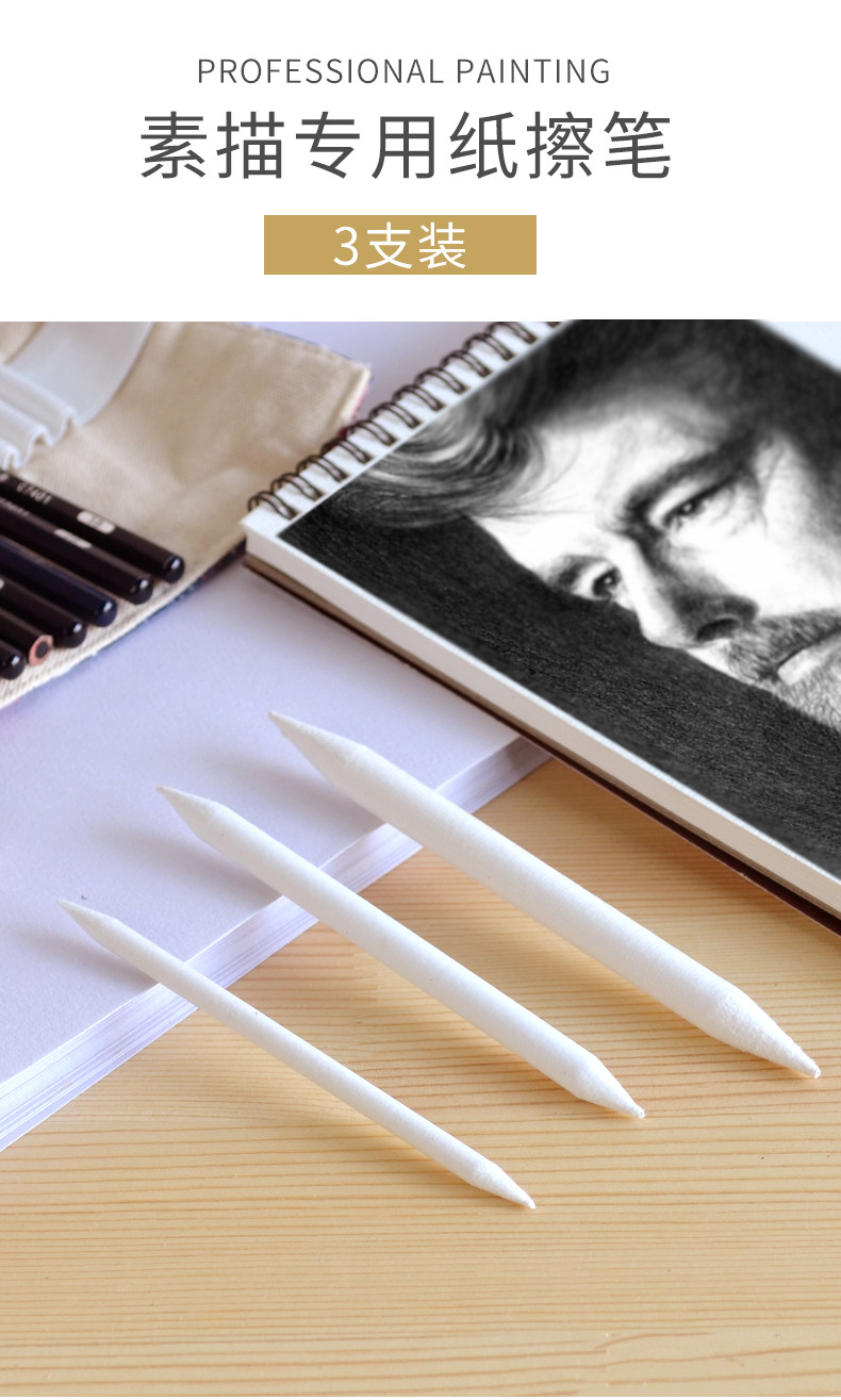 纸擦笔三支装擦笔素描美术绘画涂抹纸笔宣纸笔调和揉擦画画专用品