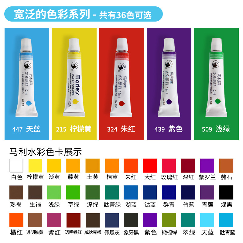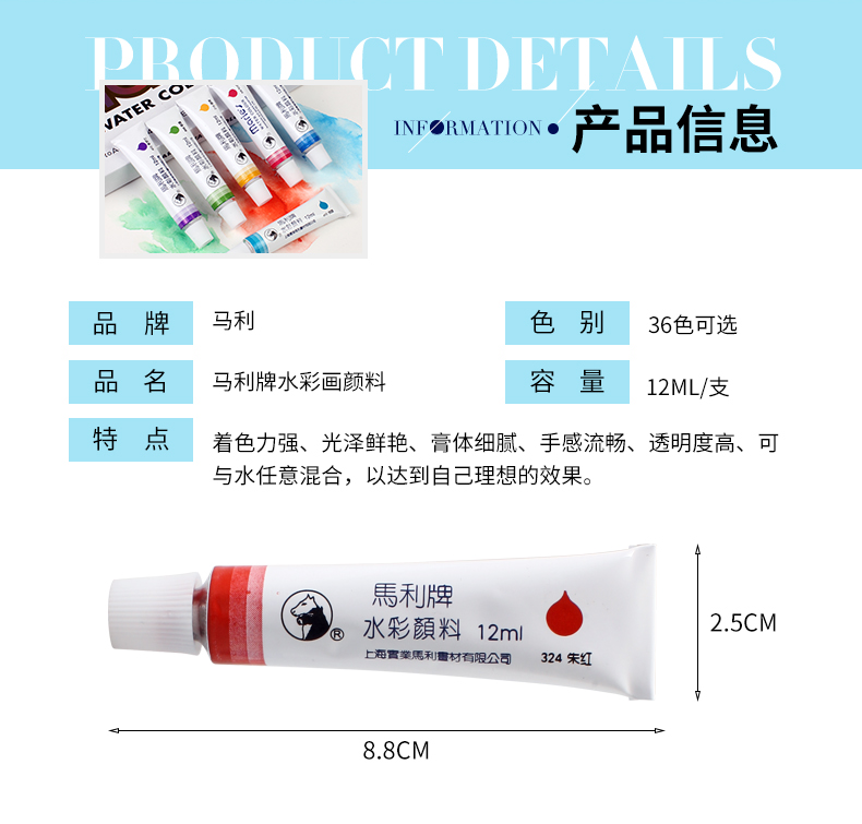 马利颜料水彩画单支12ml铝管装水彩颜料补充分装 单支水彩颜料21#