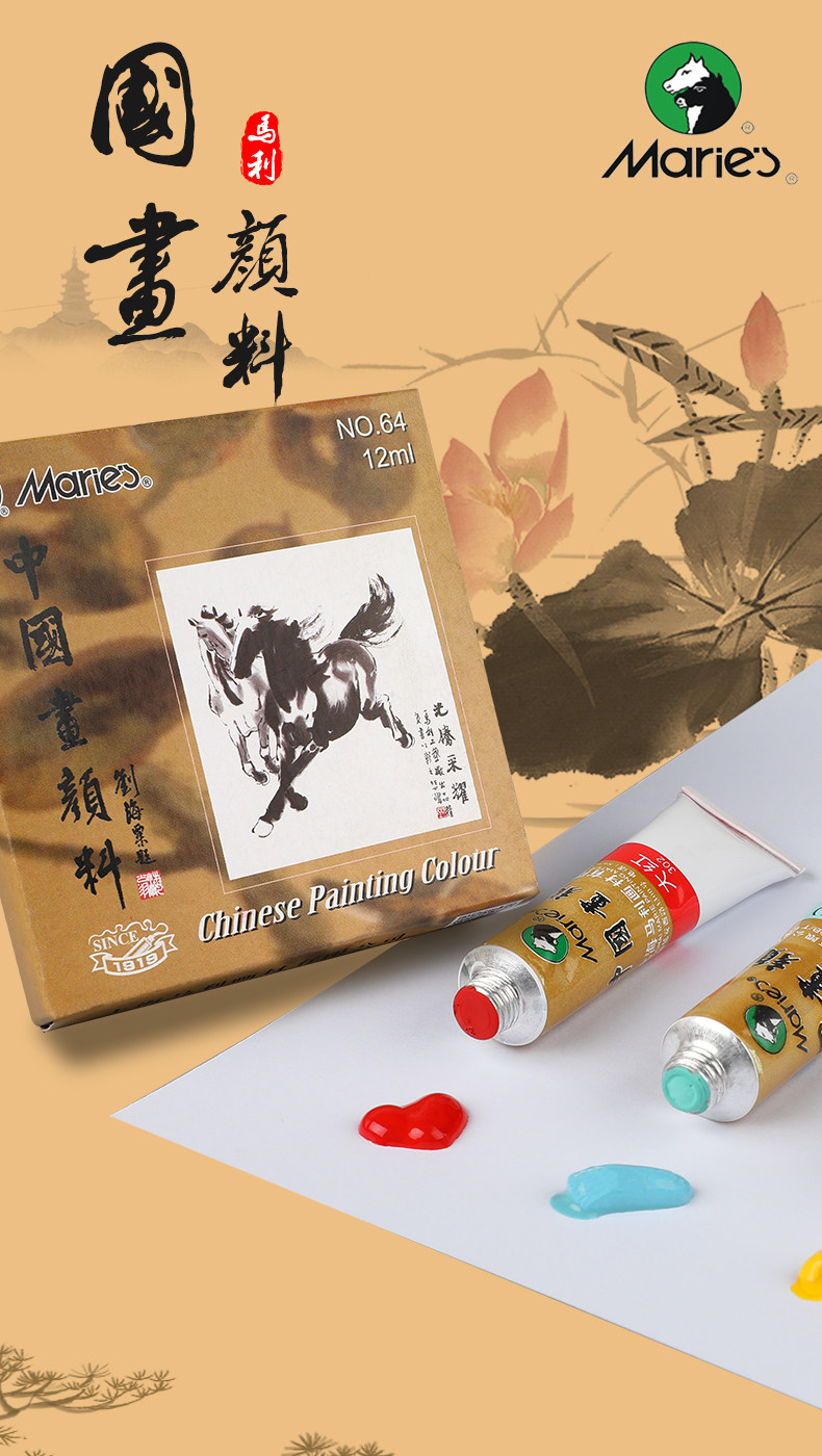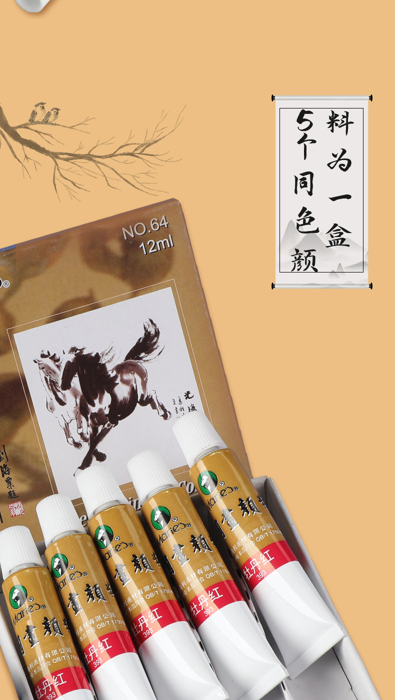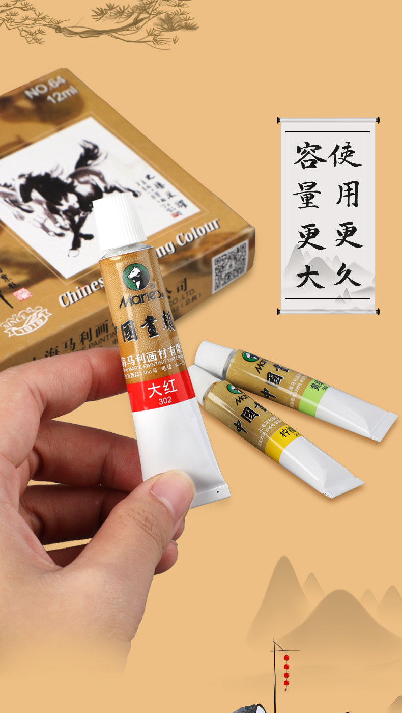 马利中国国画颜料12ml单支藤黄花青曙红钛白水墨毛笔画颜料单色64