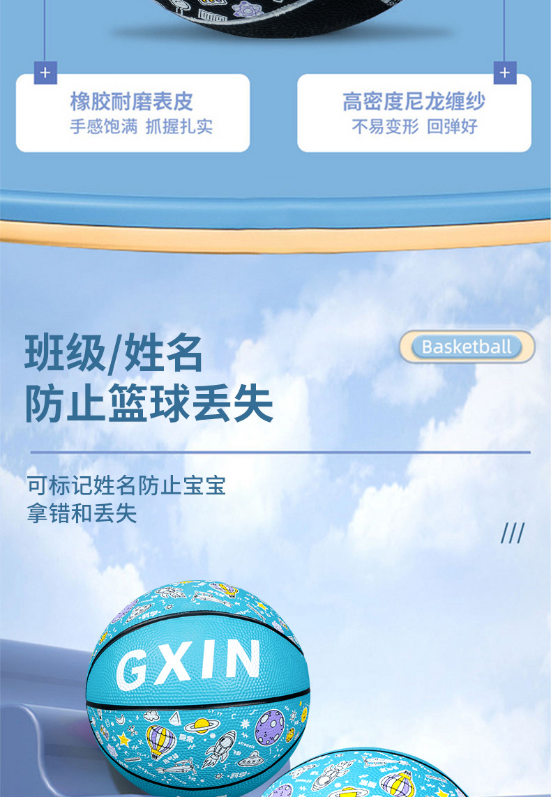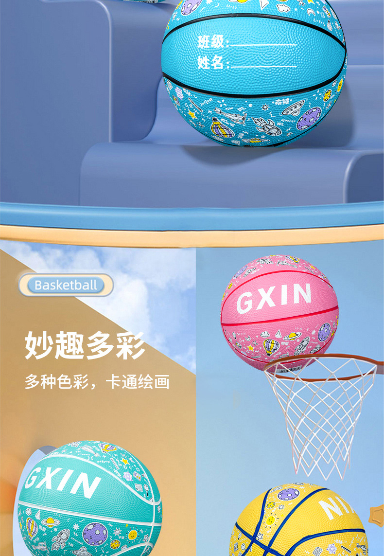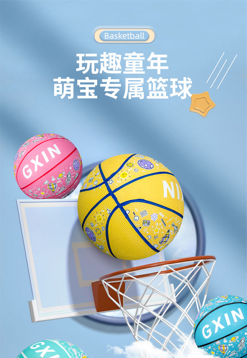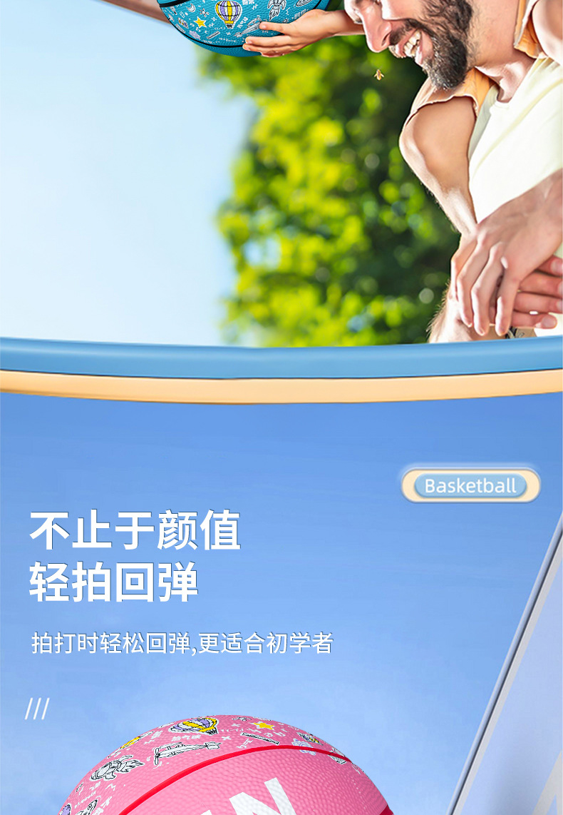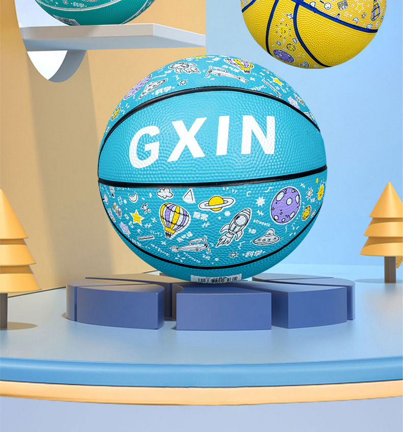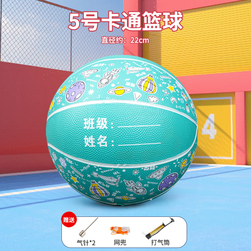 儿童运动玩具幼儿园篮球5号训练用球印花卡通皮球室外4五号蓝球