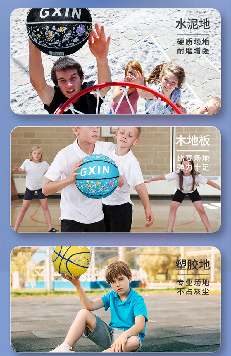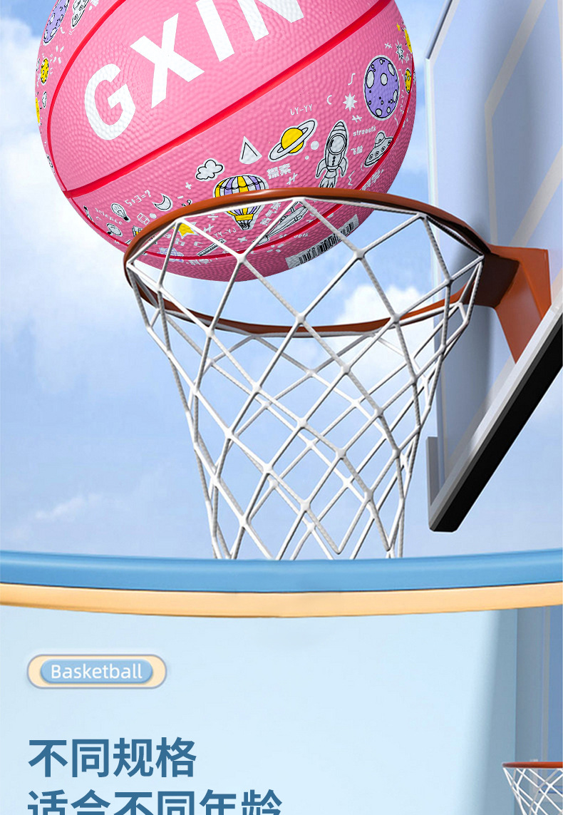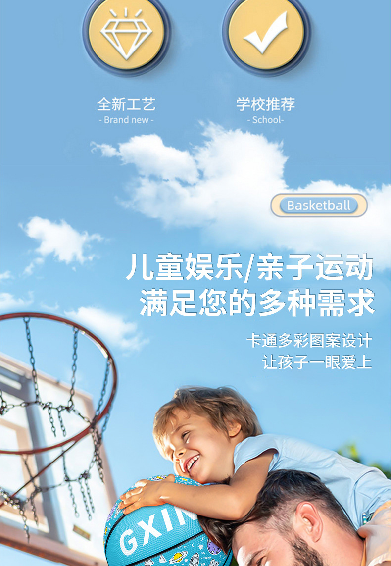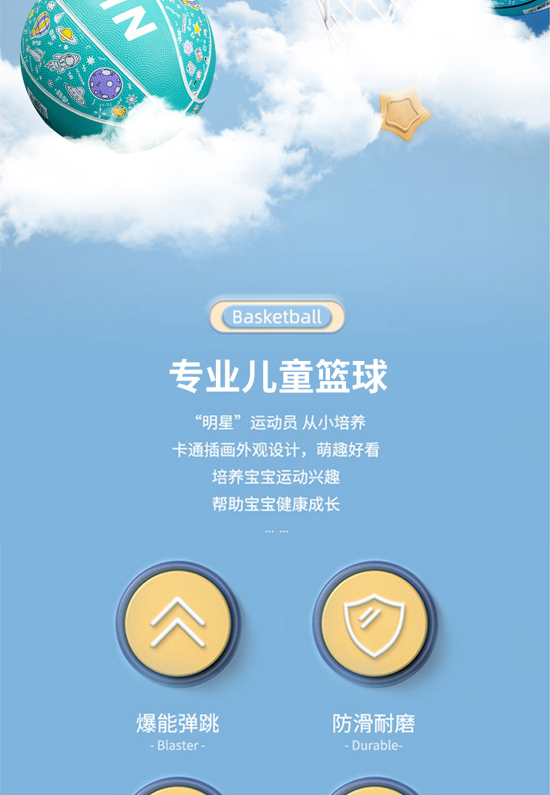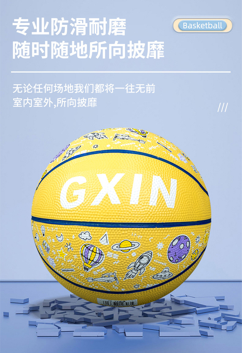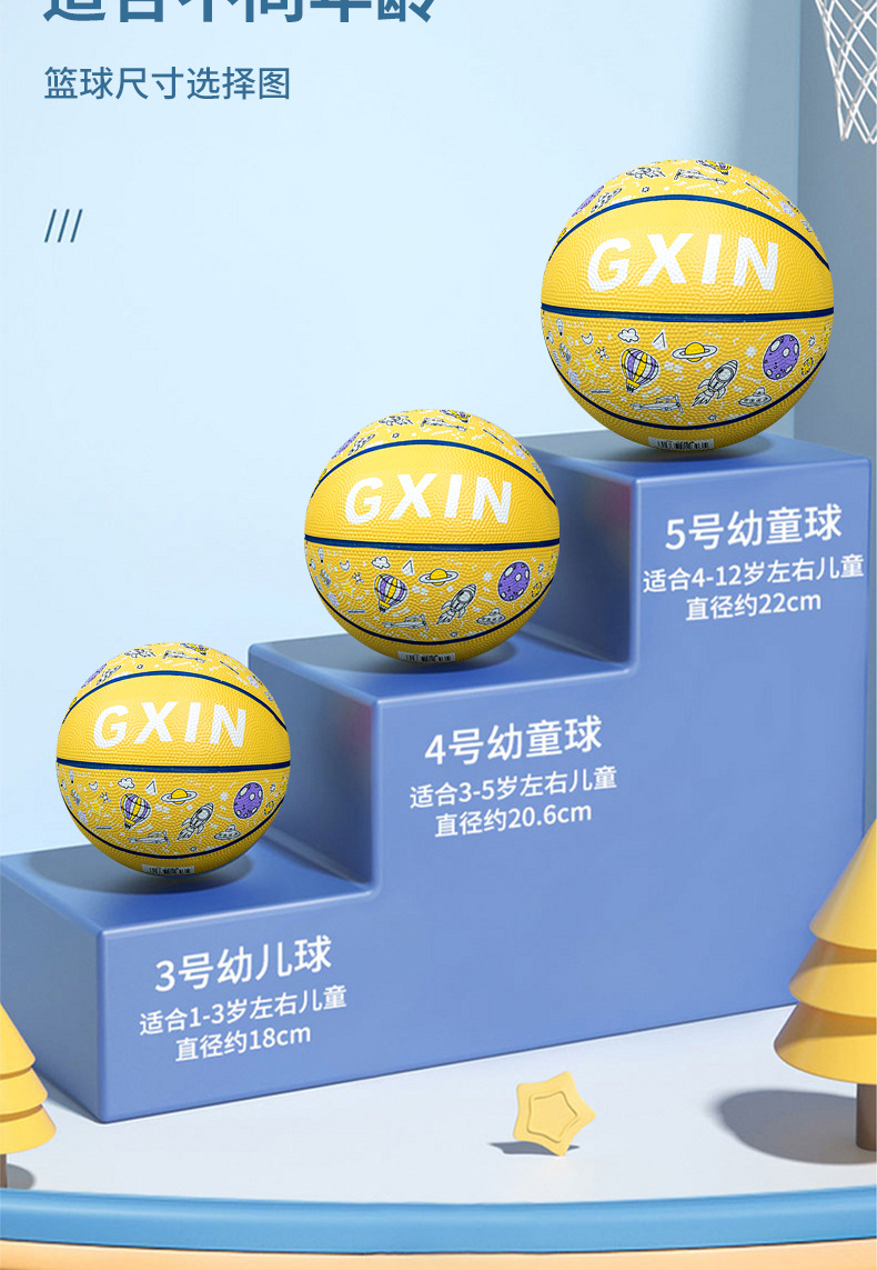 儿童运动玩具幼儿园篮球5号训练用球印花卡通皮球室外4五号蓝球