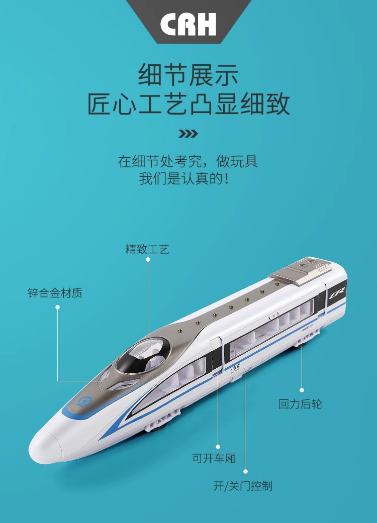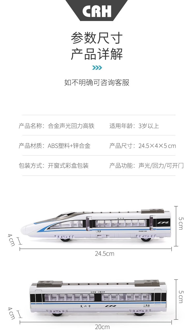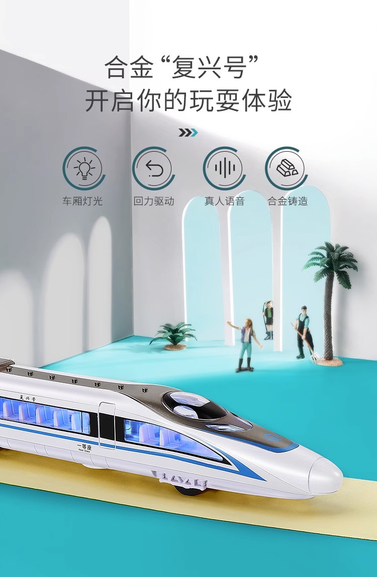 儿童合金回力带轻轨道列车仿真和谐复兴号高铁动车模型火车头玩具