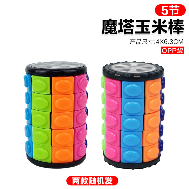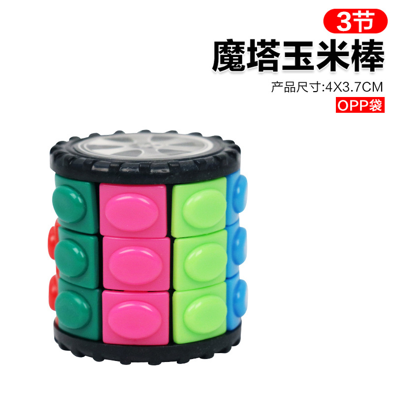 跨境 DIY儿童益智立体魔塔 玉米魔方开发智力魔方玩具圆柱型魔方