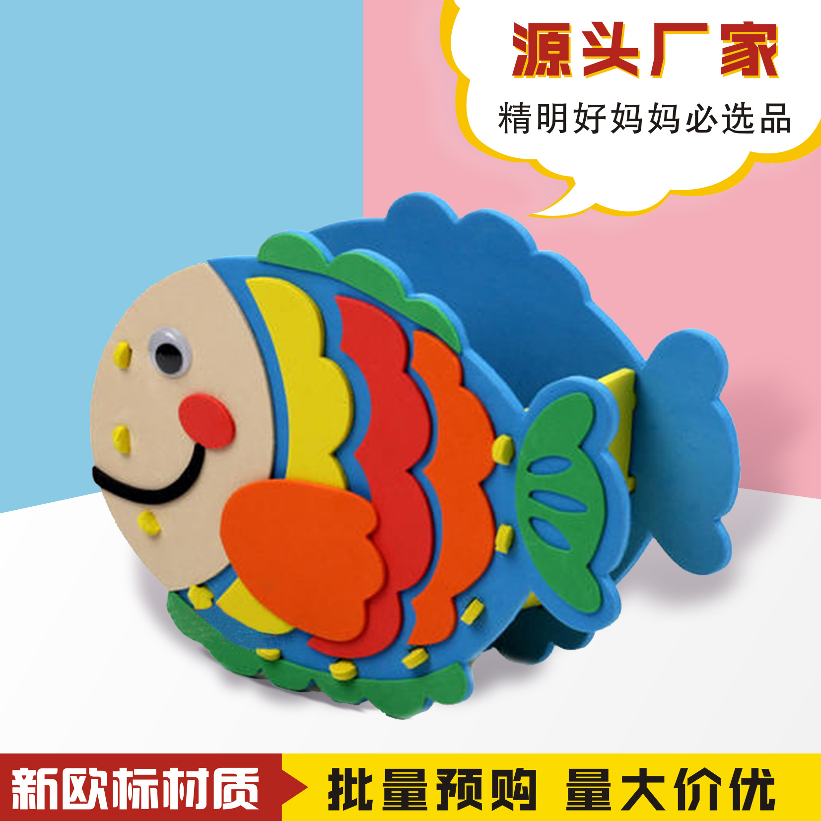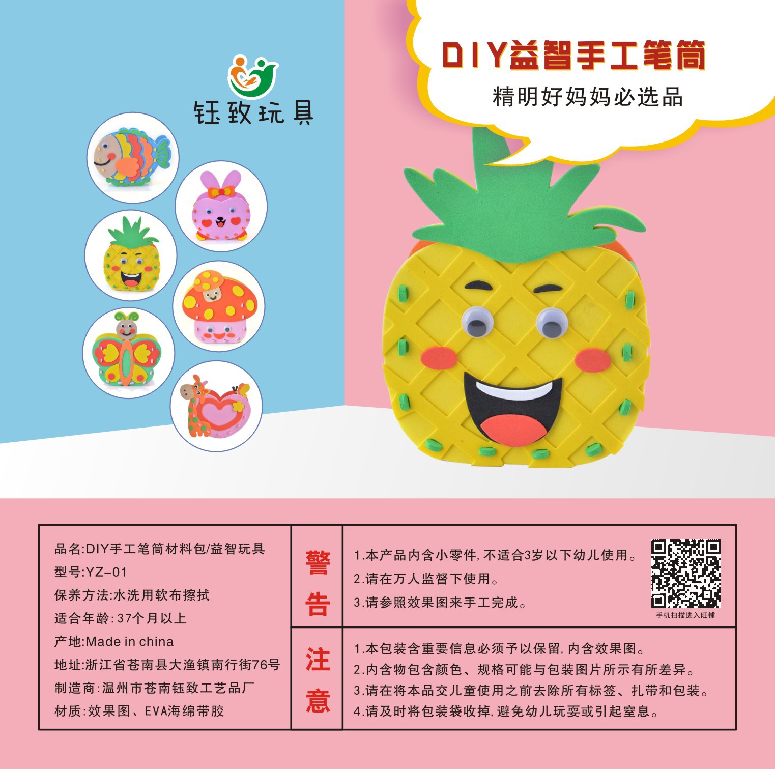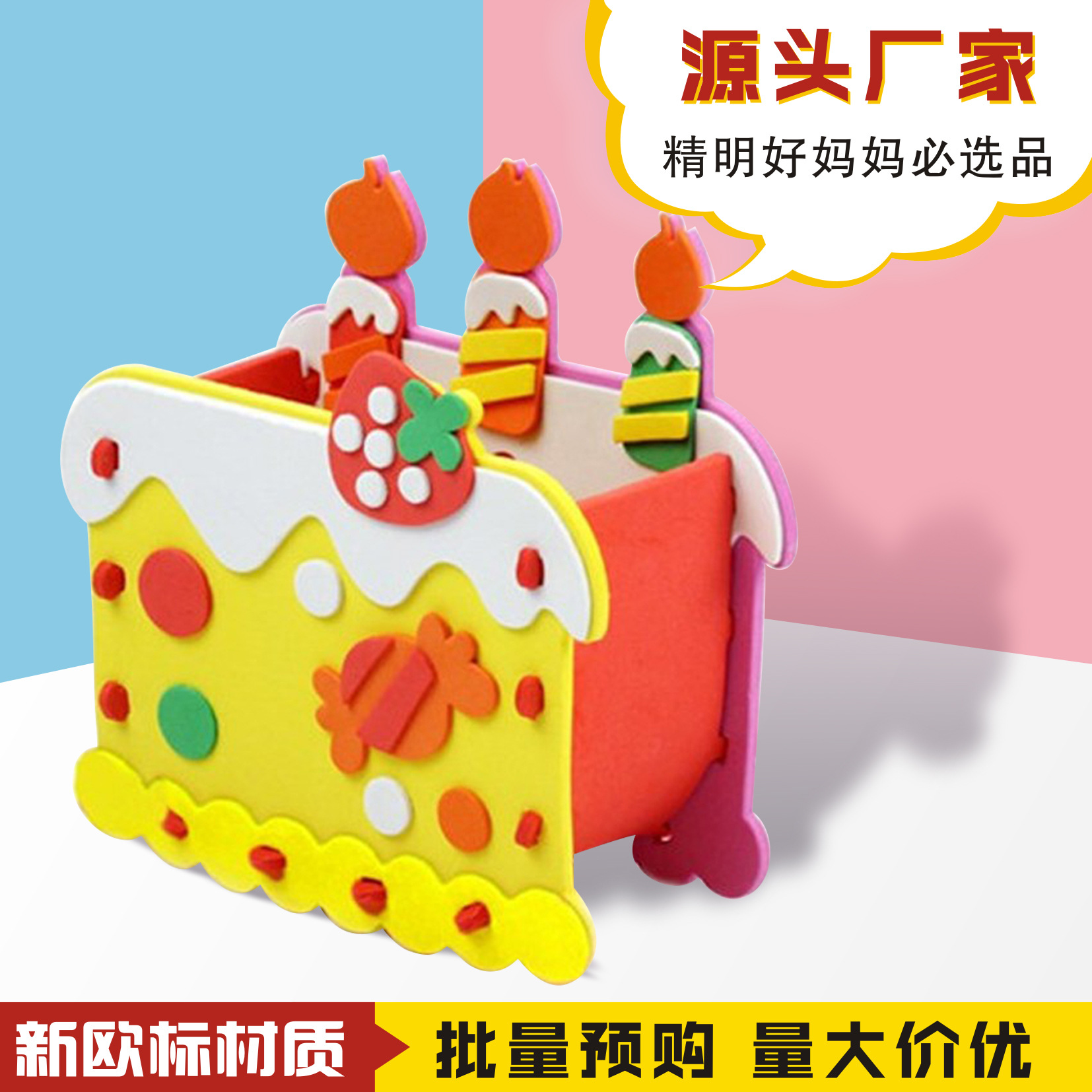 DIY笔筒 3D立体拼插儿童智力玩具 EVA小学生创意材料包笔桶批发