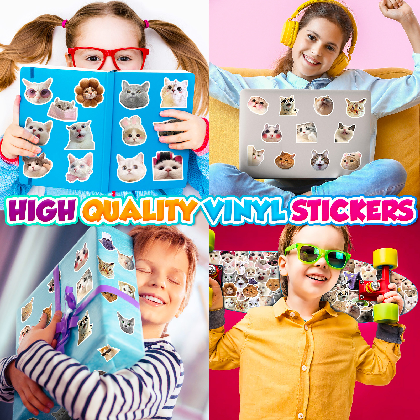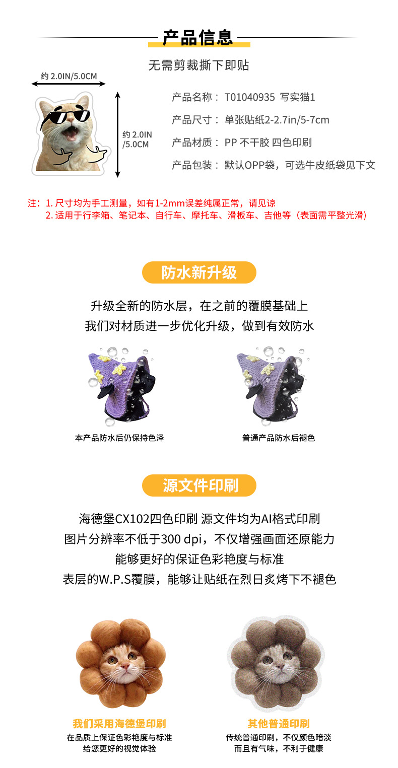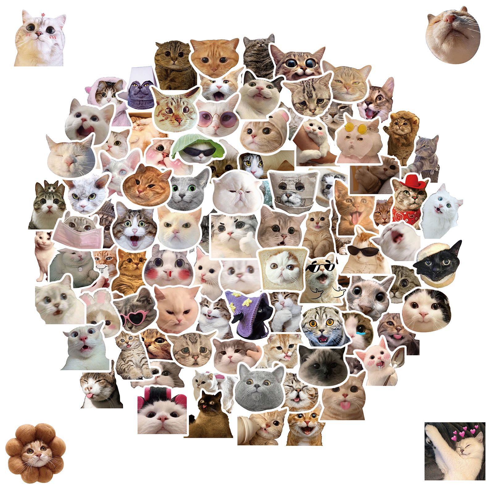 50张猫猫贴纸网红猫咪表情包涂鸦贴纸跨境可爱搞怪搞笑猫咪头贴纸