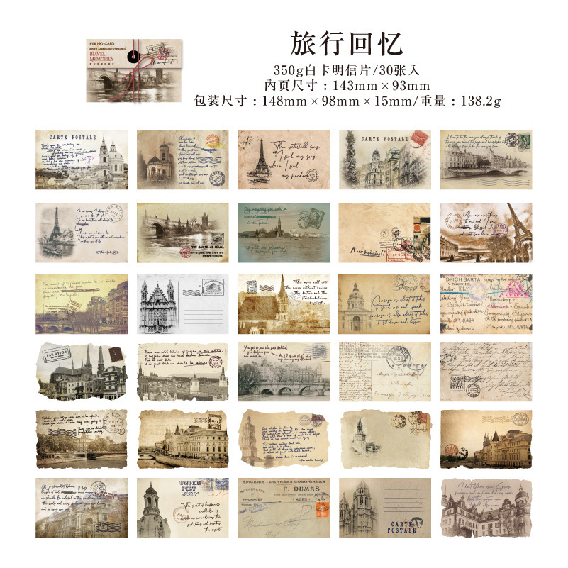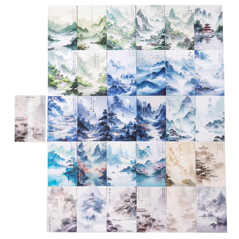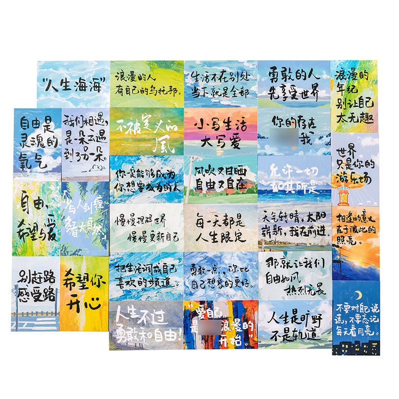 陌墨盒装明信片 喜乐如常系列 中国风文字节日祝福留言贺卡30张入