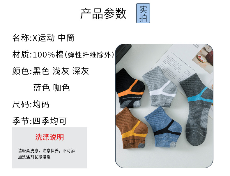 纯棉袜子男新款中筒袜透气吸汗运动袜字母X篮球袜外贸批发袜子