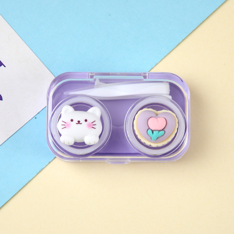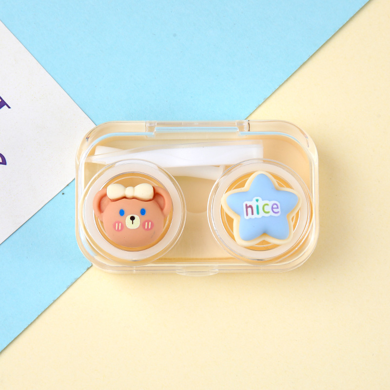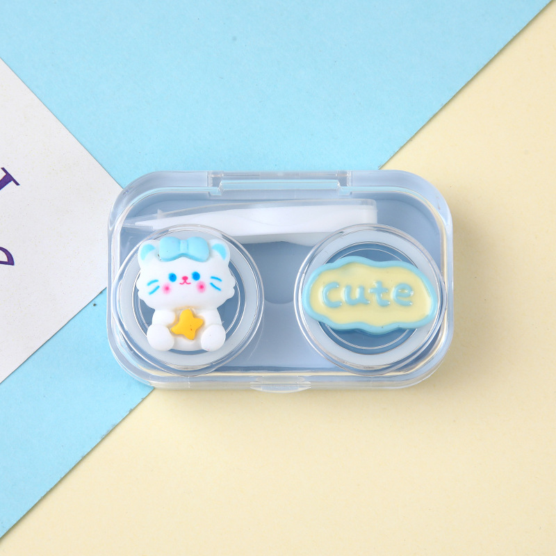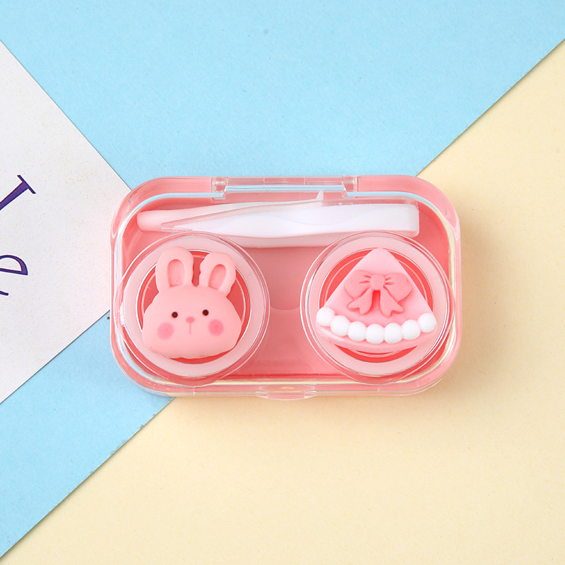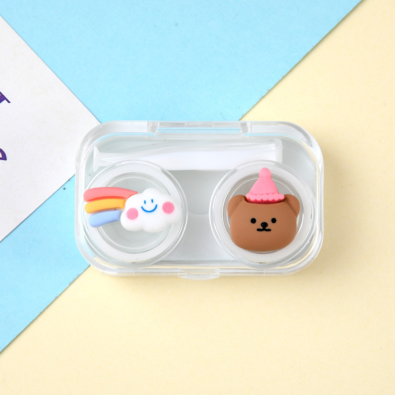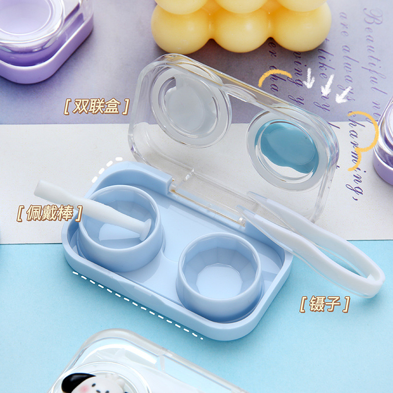 卡通可视透明隐形眼镜盒可爱小巧美瞳盒子便携式免拧盖一体伴侣盒