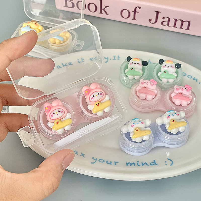 美瞳盒可爱泳圈小动物一副装透明收纳精品卡通隐形眼镜便携伴侣盒