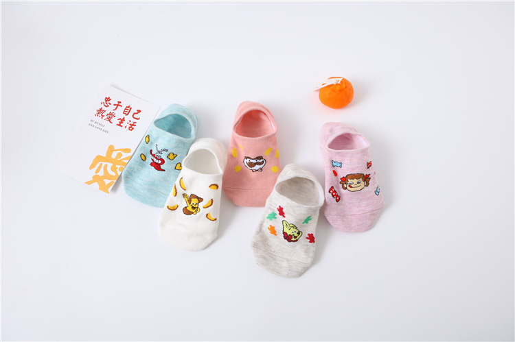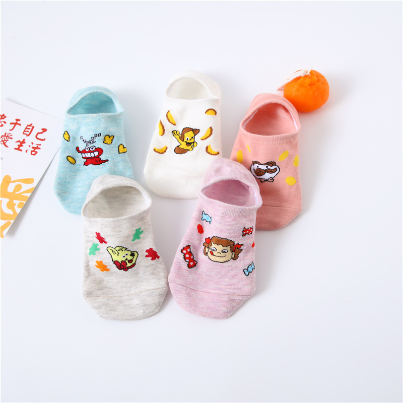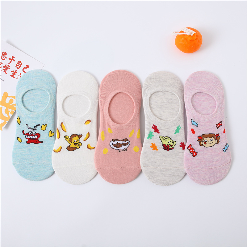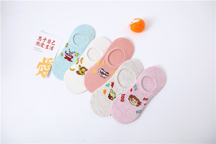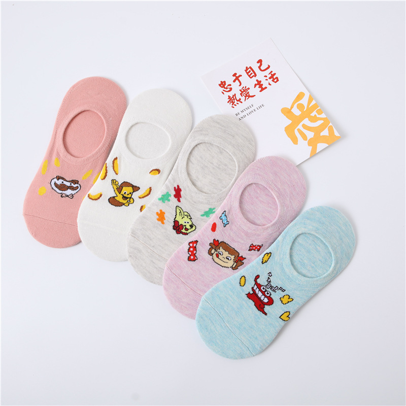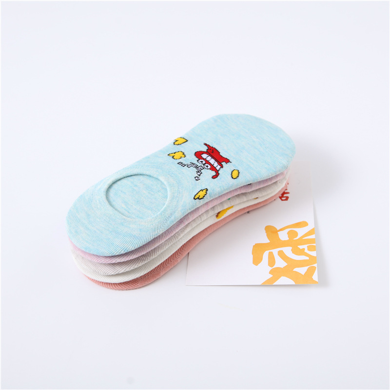 春夏新款隐形袜硅胶不掉跟棉袜子女日系可爱小新卡通袜厂家批发