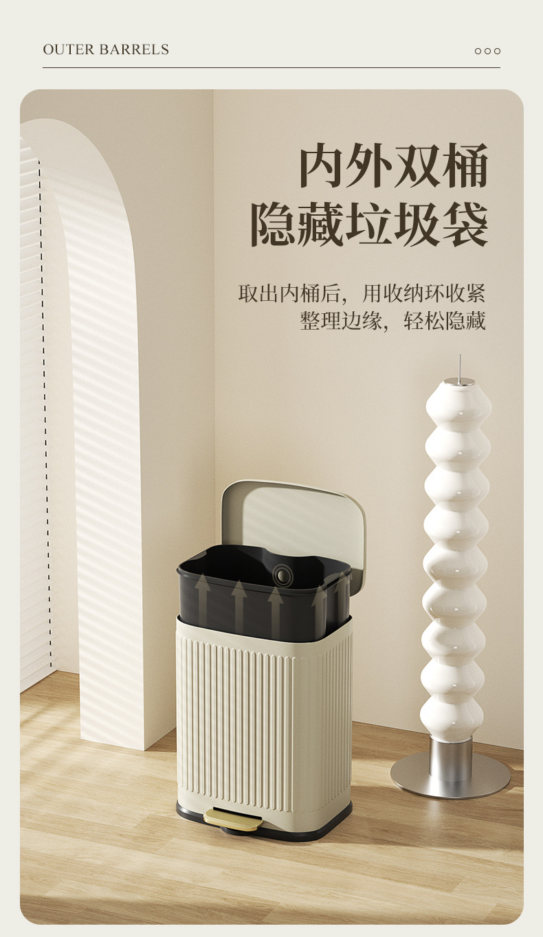 不锈钢垃圾桶家用大号客厅高颜值ins风带盖脚踩脚踏式方形垃圾桶