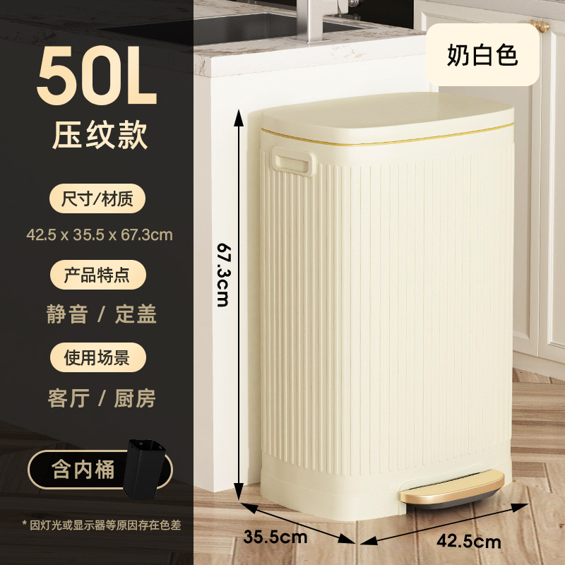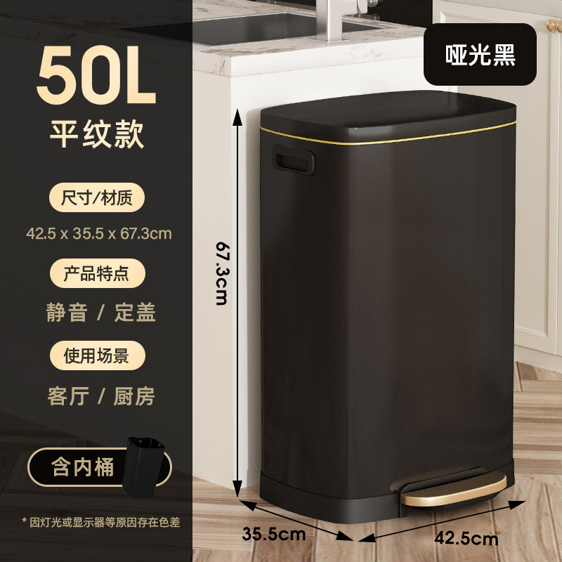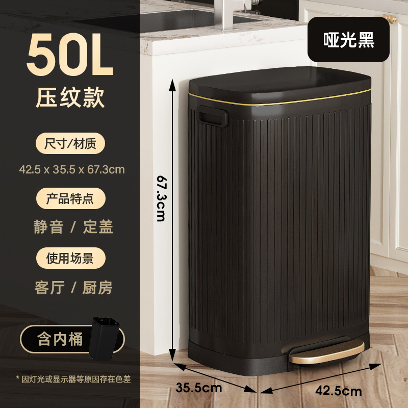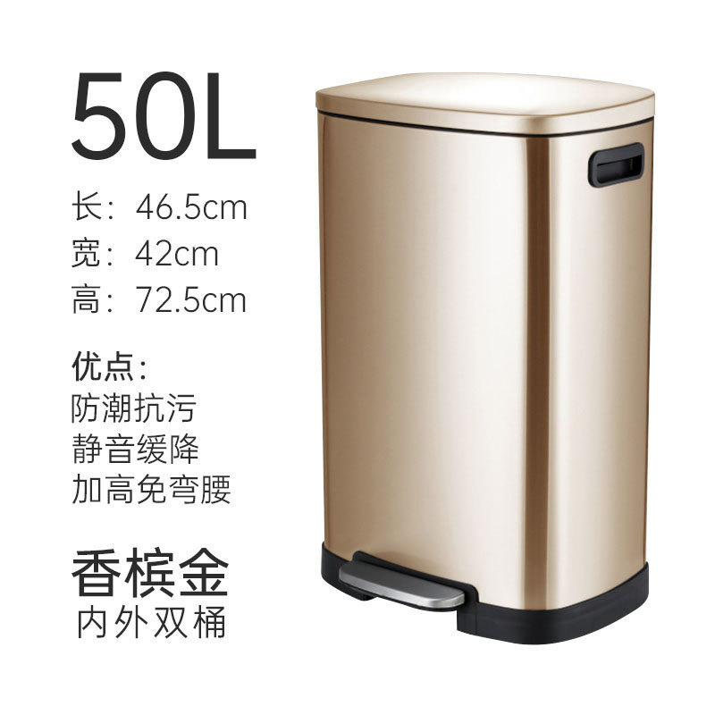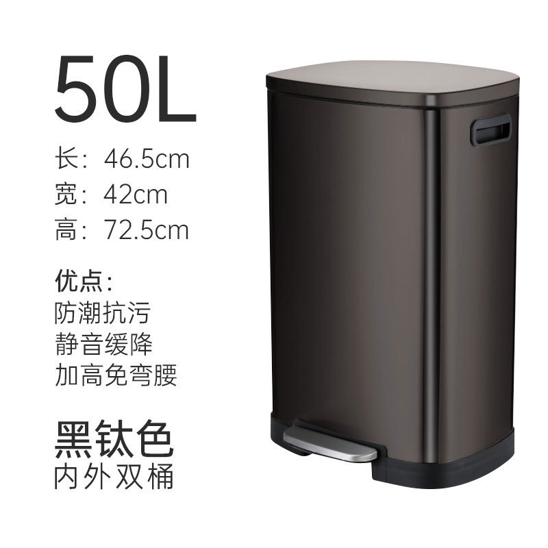 不锈钢垃圾桶厨房家用大号脚踏式带盖酒店办公室商用超大容量50升