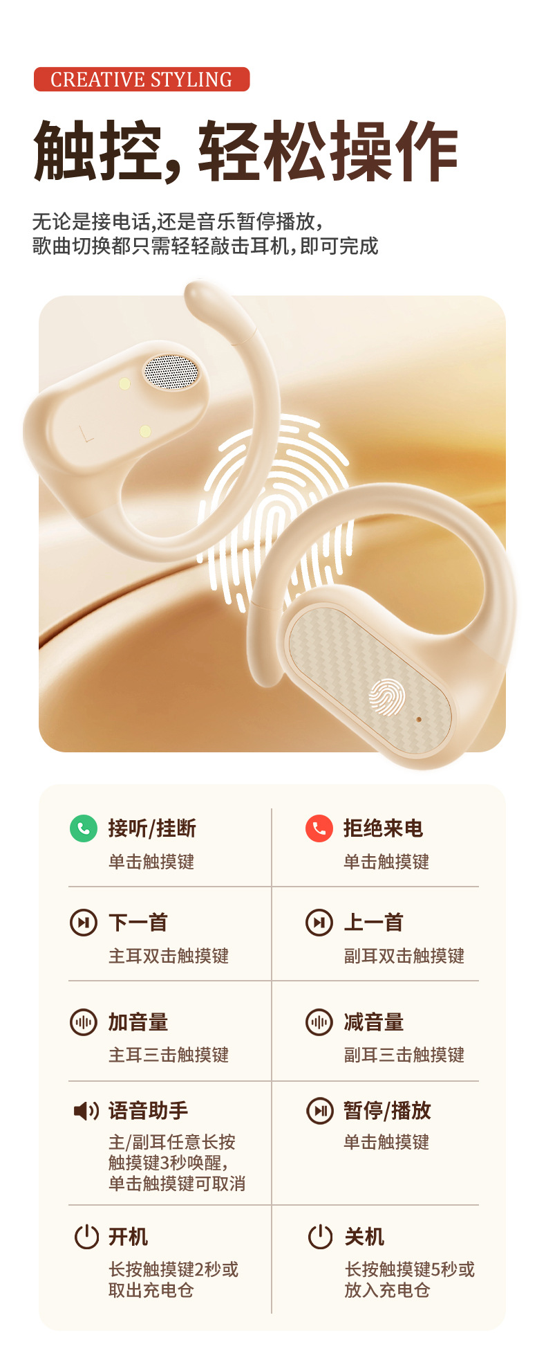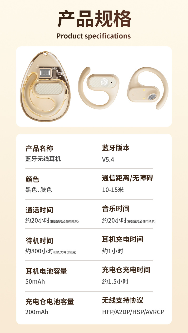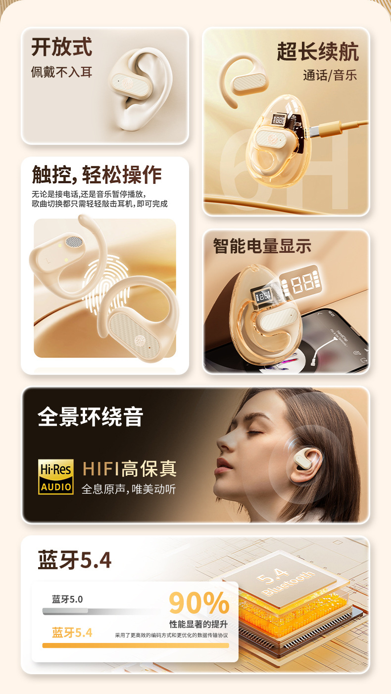 抖音爆款 Z68Pro挂耳式跨境新款舒适佩戴蓝牙5.4高音质超长续航私