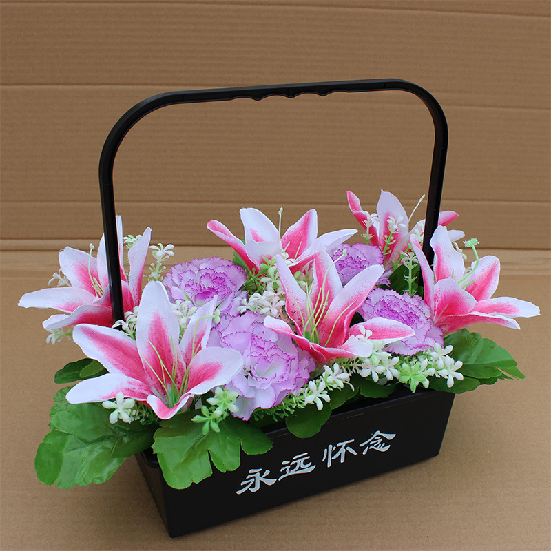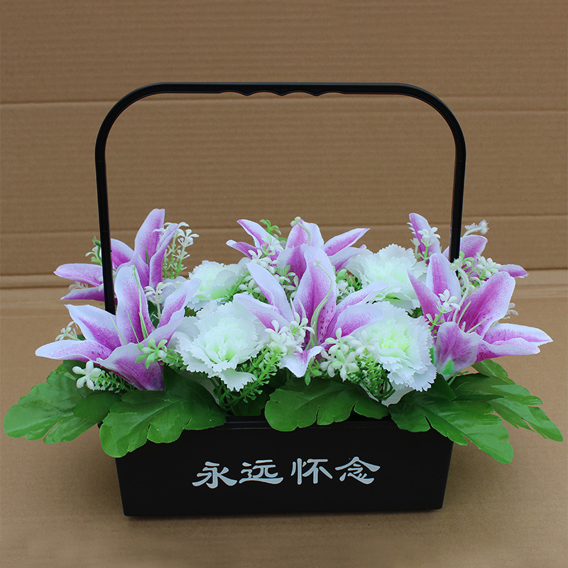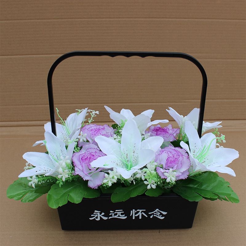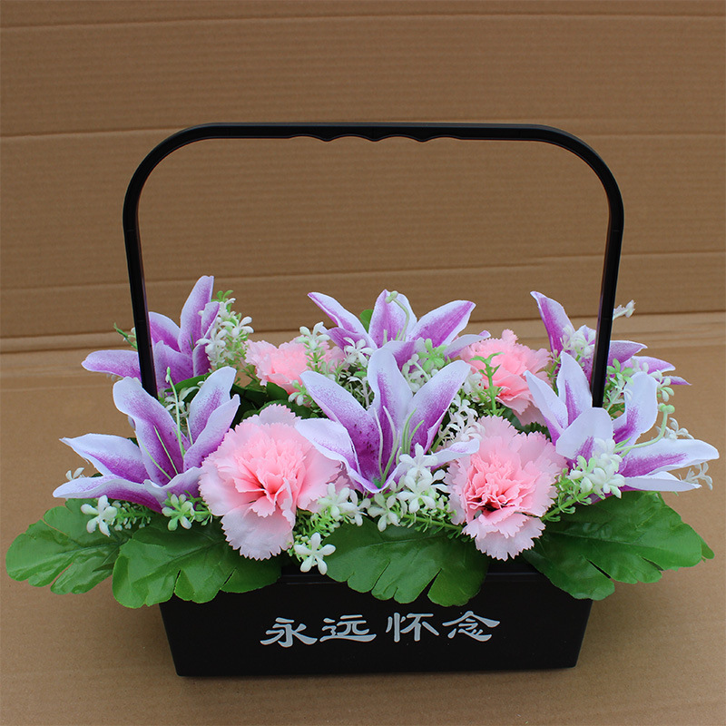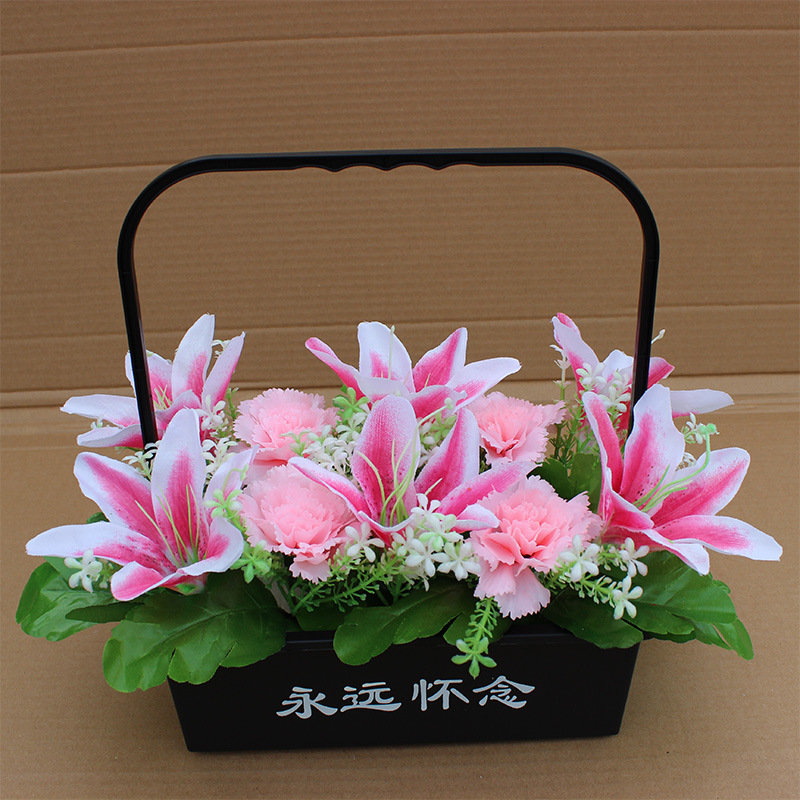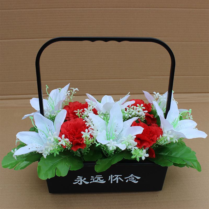 便宜扫墓花篮康乃馨盘景祭祀假花祭祖祭奠摆放花陵园花上坟塑料花
