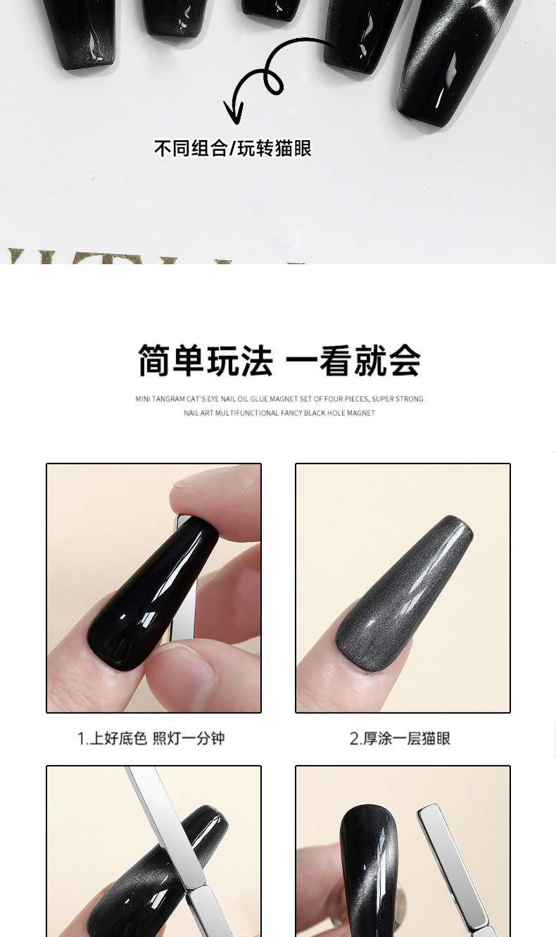美甲多功能花式超强磁铁黑洞甲油胶迷你七巧板猫眼磁铁工具套装