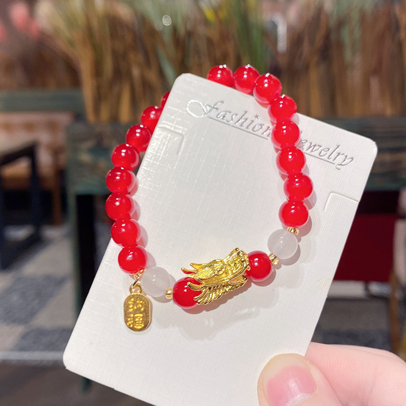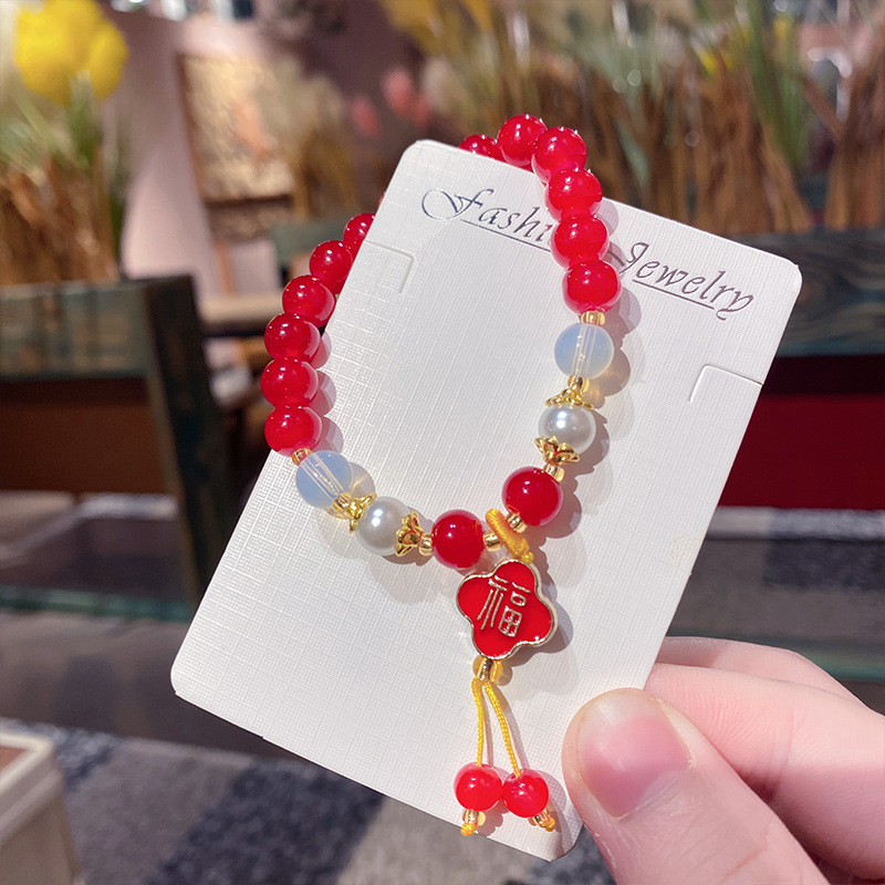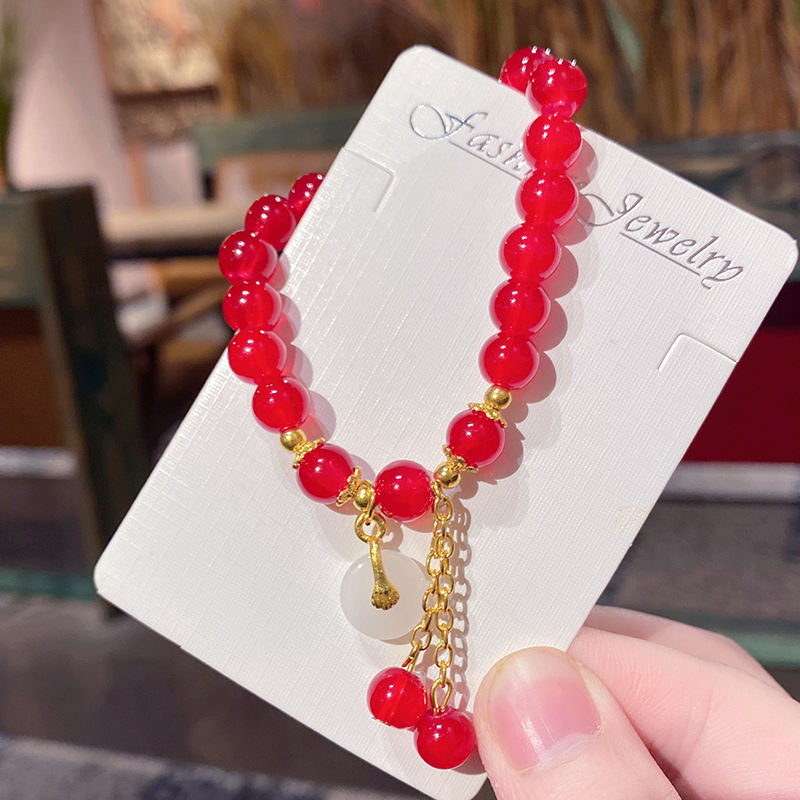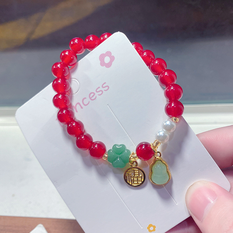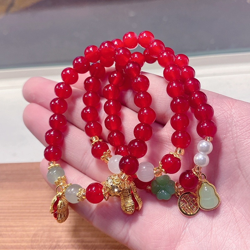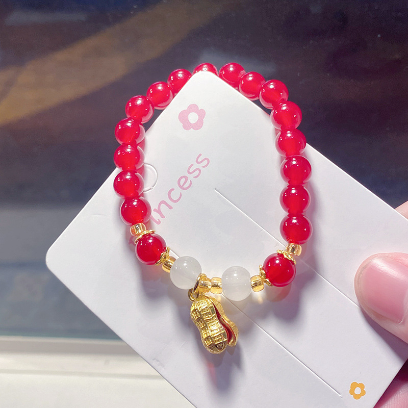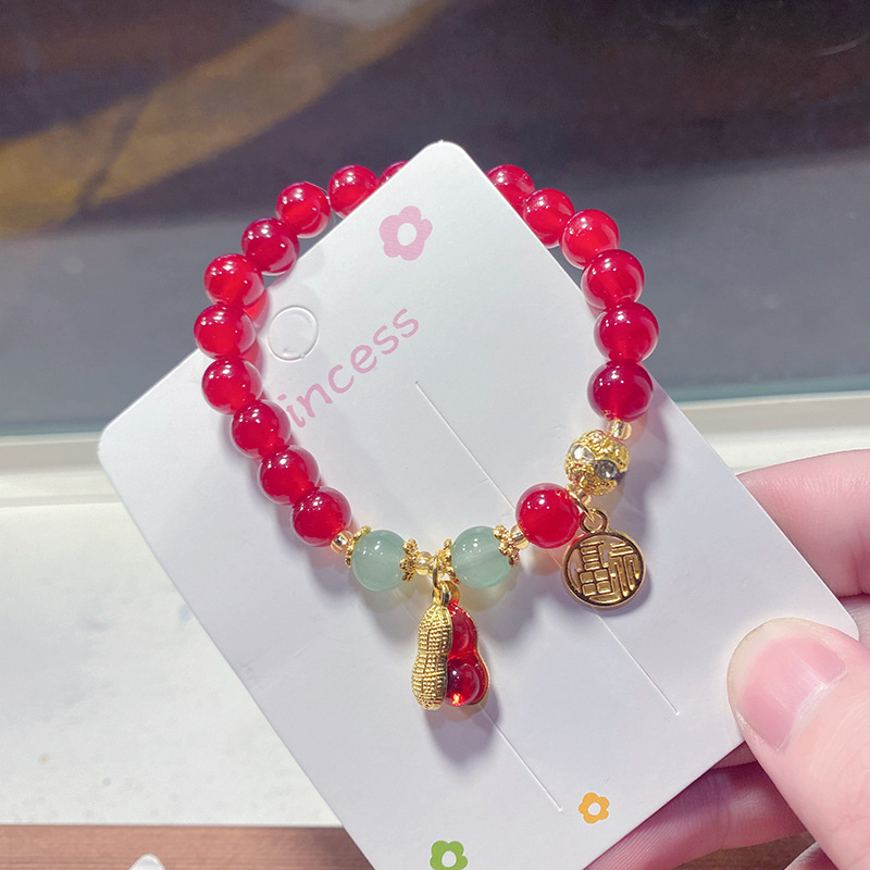新年饰品好事花生手串大红色学生串珠葫芦福牌手链批发义乌饰品