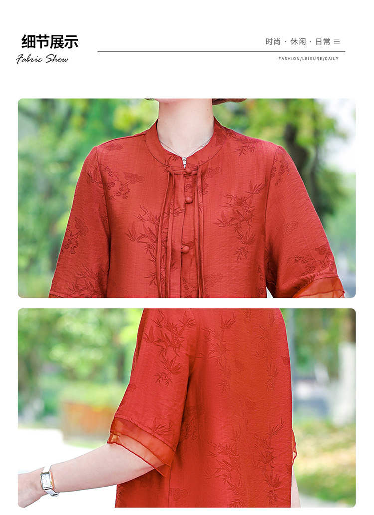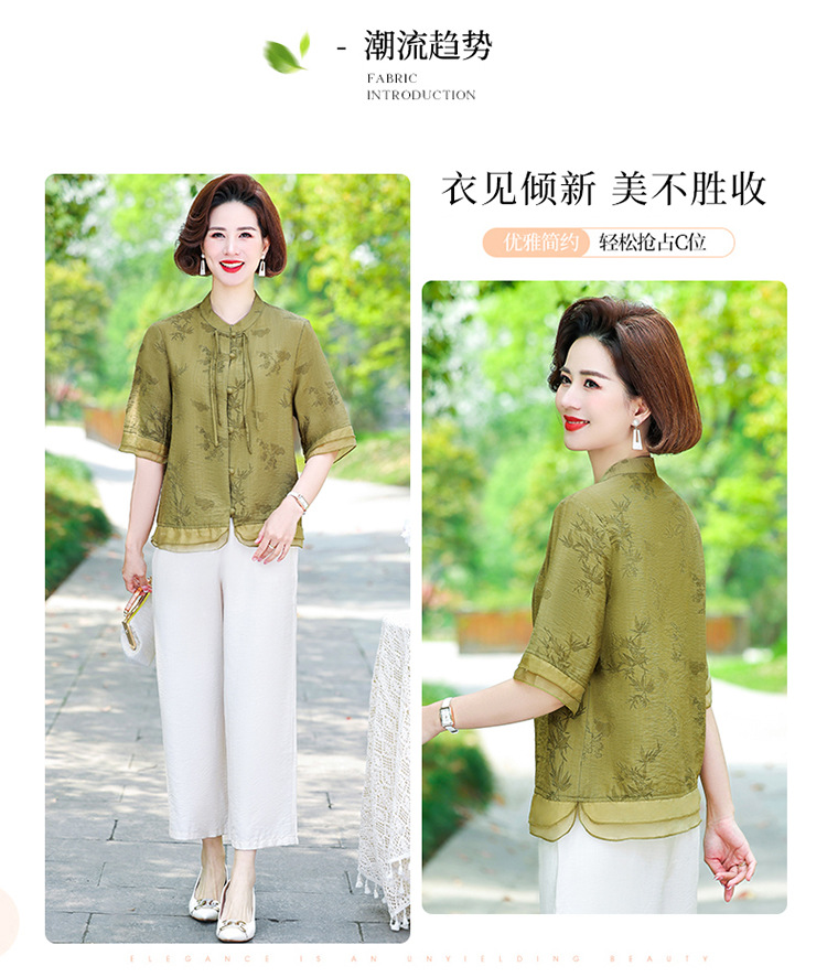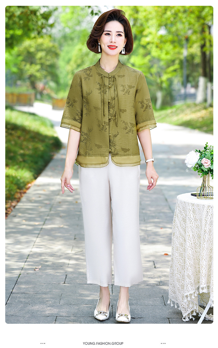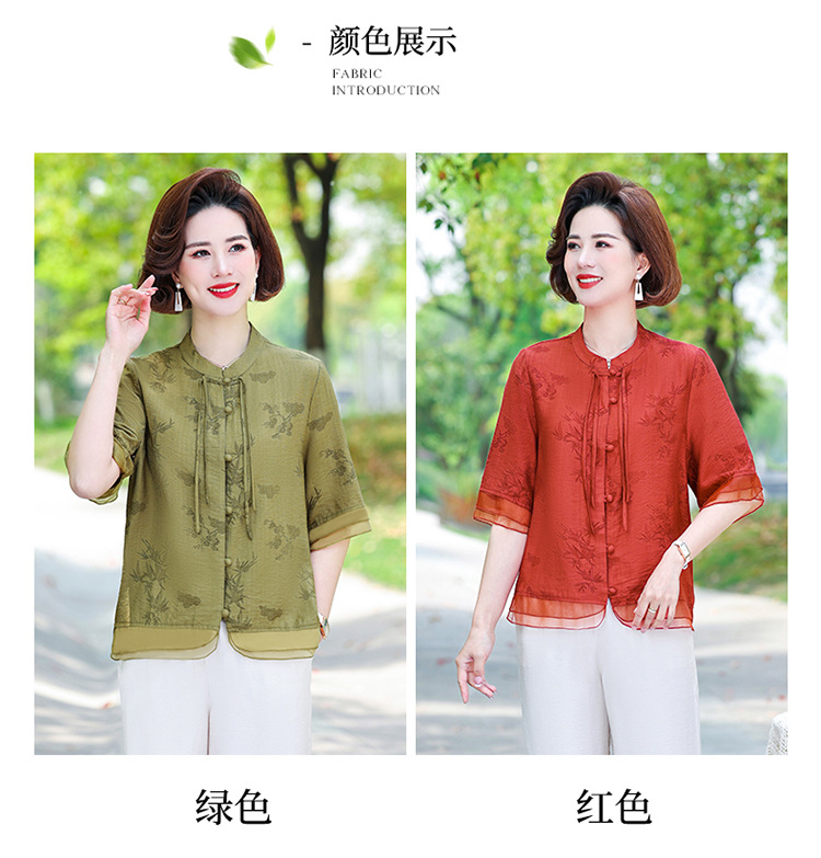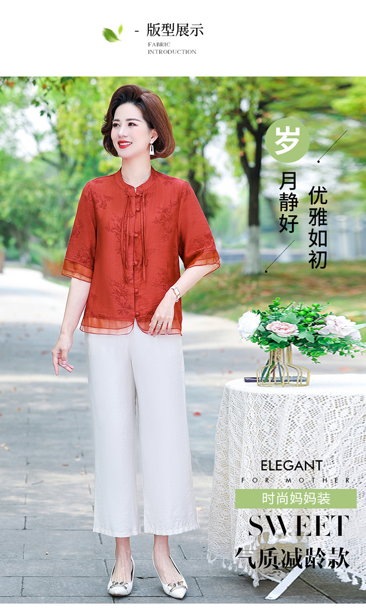 妈妈夏装洋气中式国风上衣中年妇女新款夏季中袖中老年女两件套装