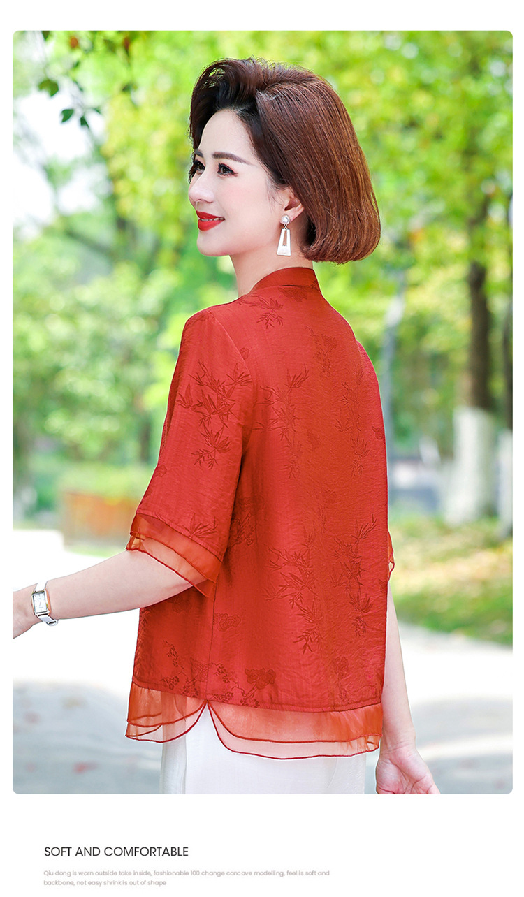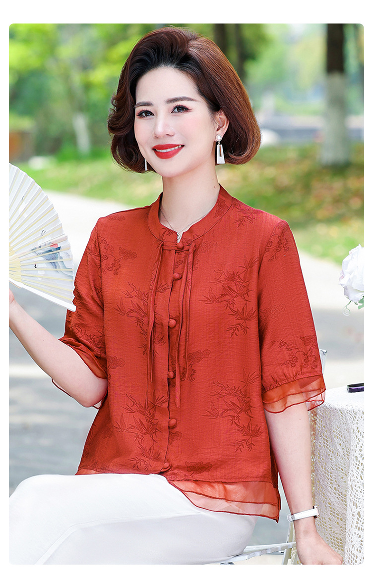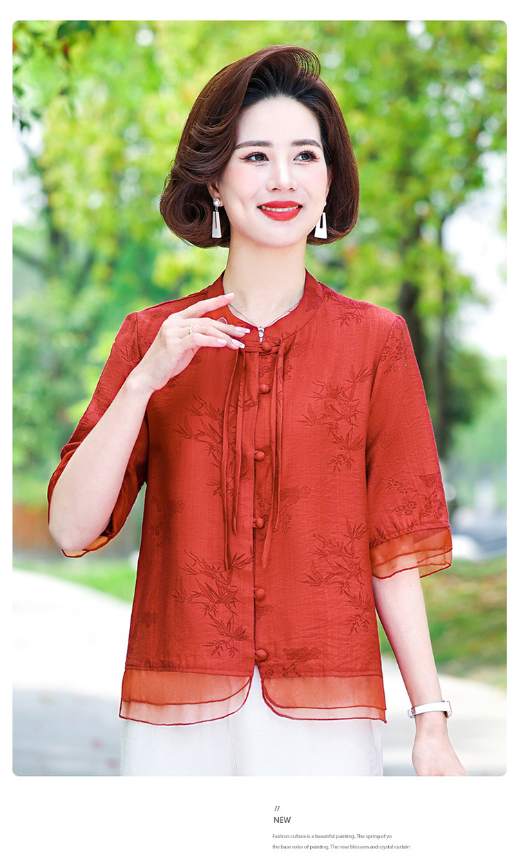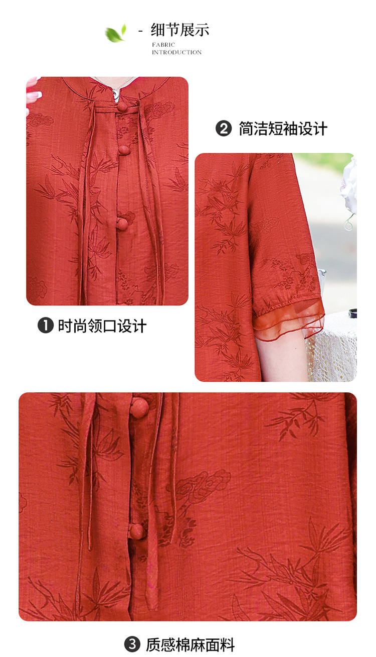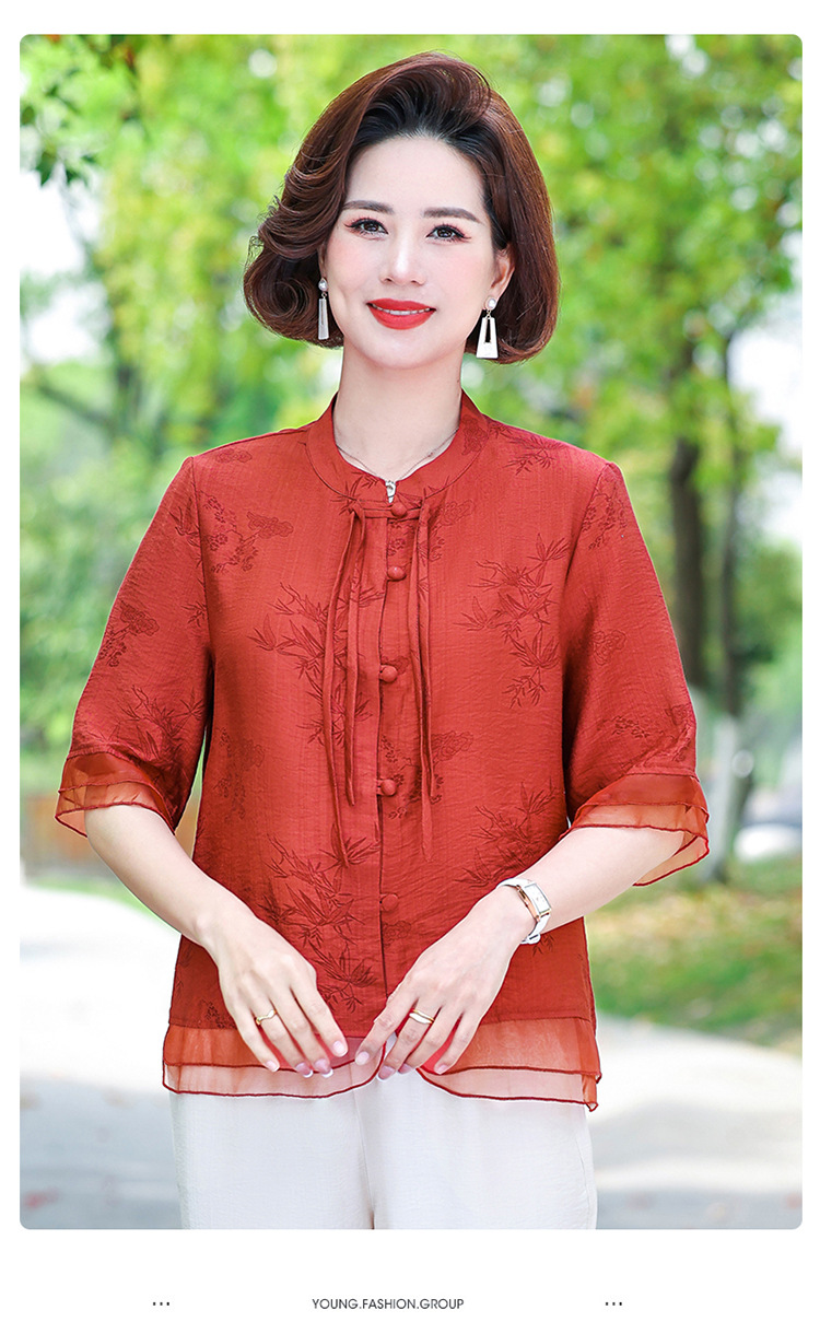 妈妈夏装洋气中式国风上衣中年妇女新款夏季中袖中老年女两件套装