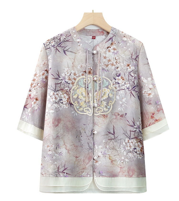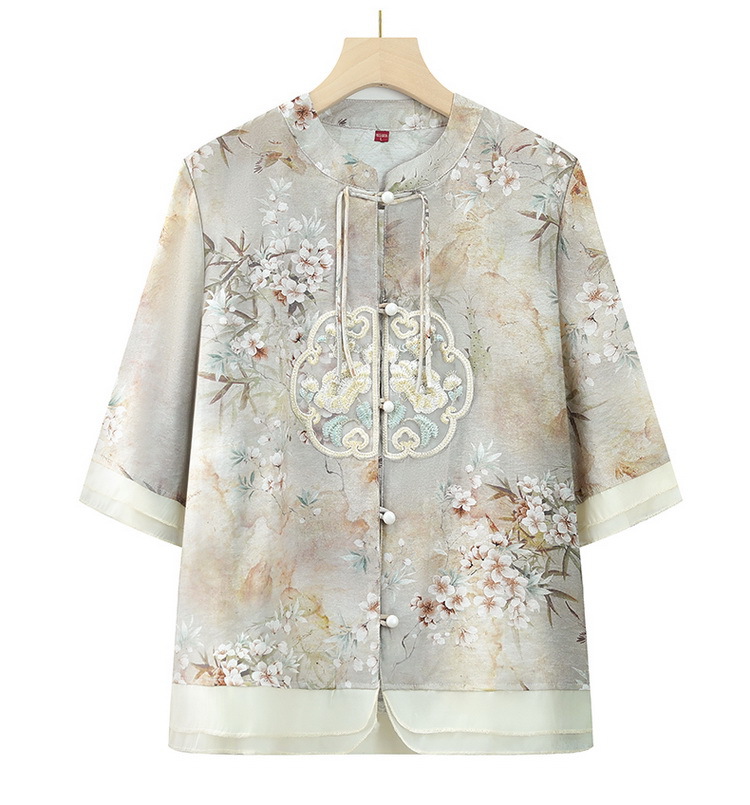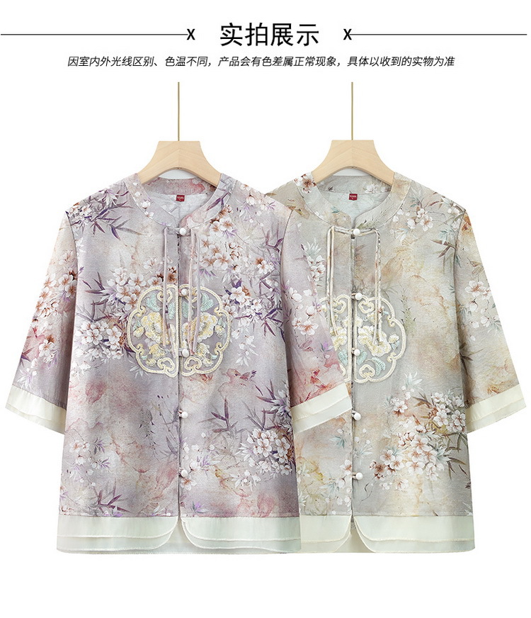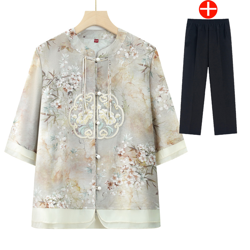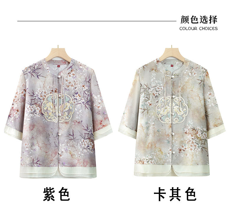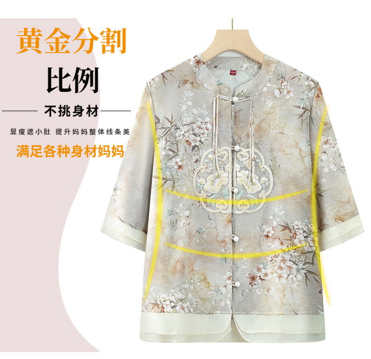 妈妈夏装国风衬衫中老年女装新中式衬衣奶奶七分袖开衫上衣服套装