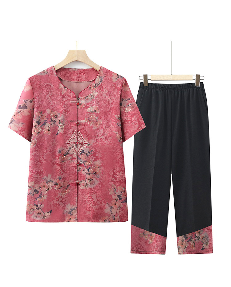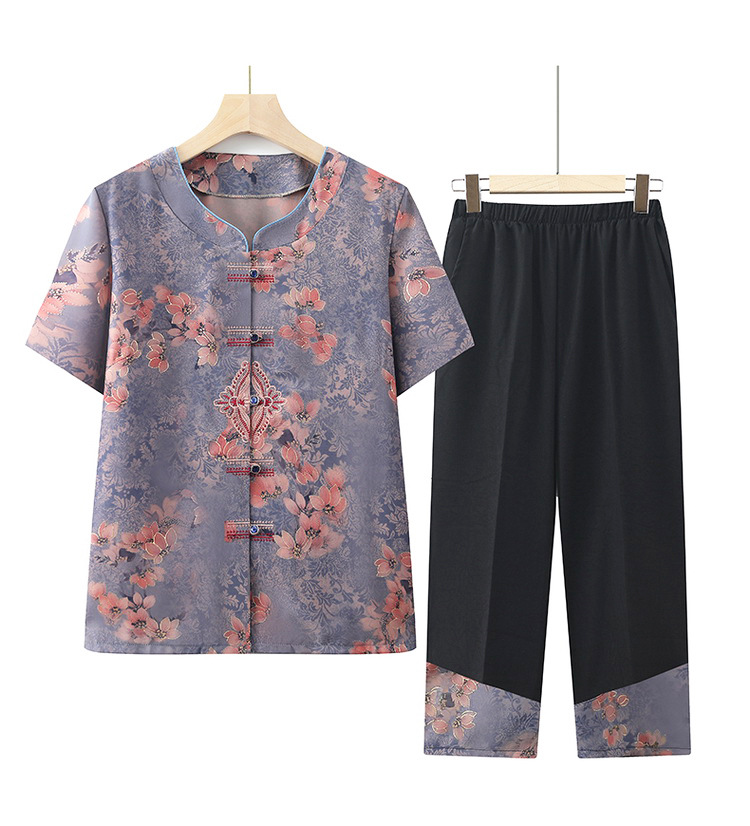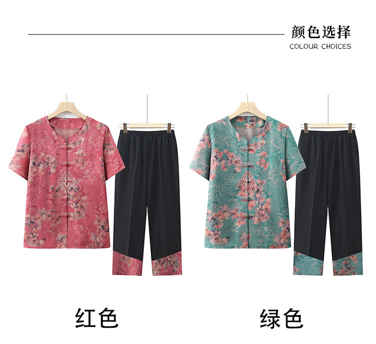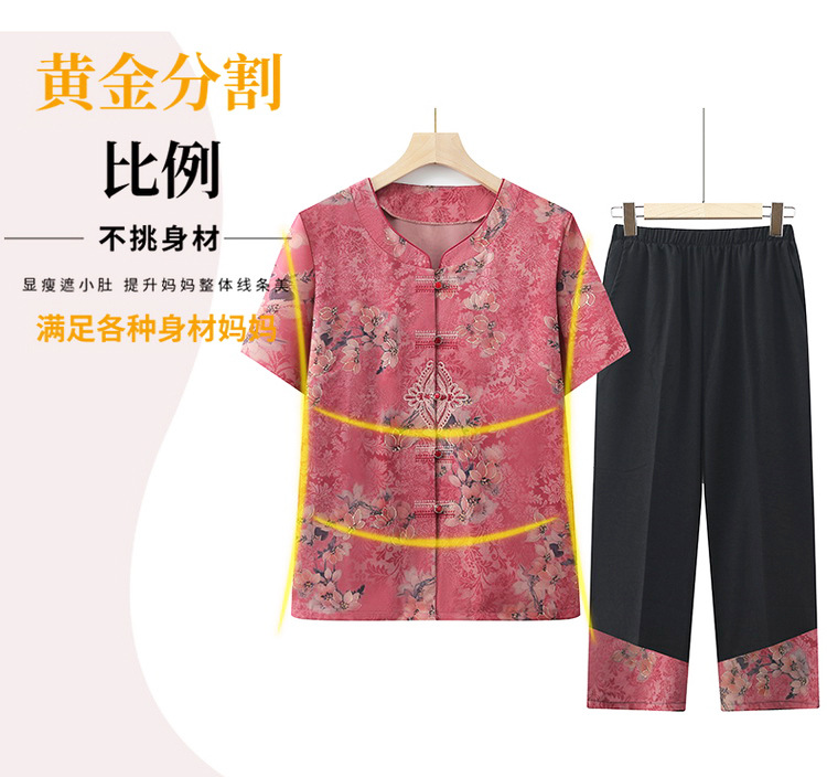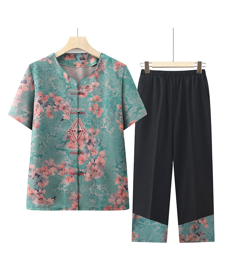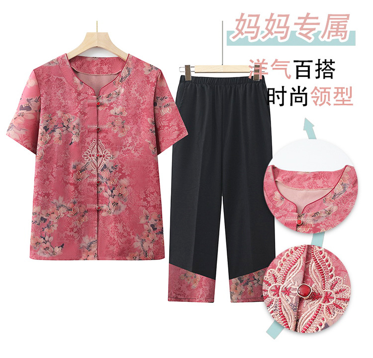 中老年人套装女奶奶夏装短袖衬衫妈妈刺绣开衫两件套70岁太太唐装