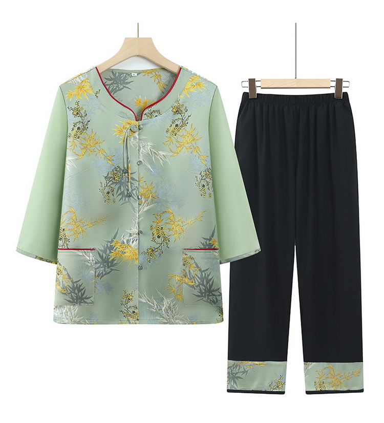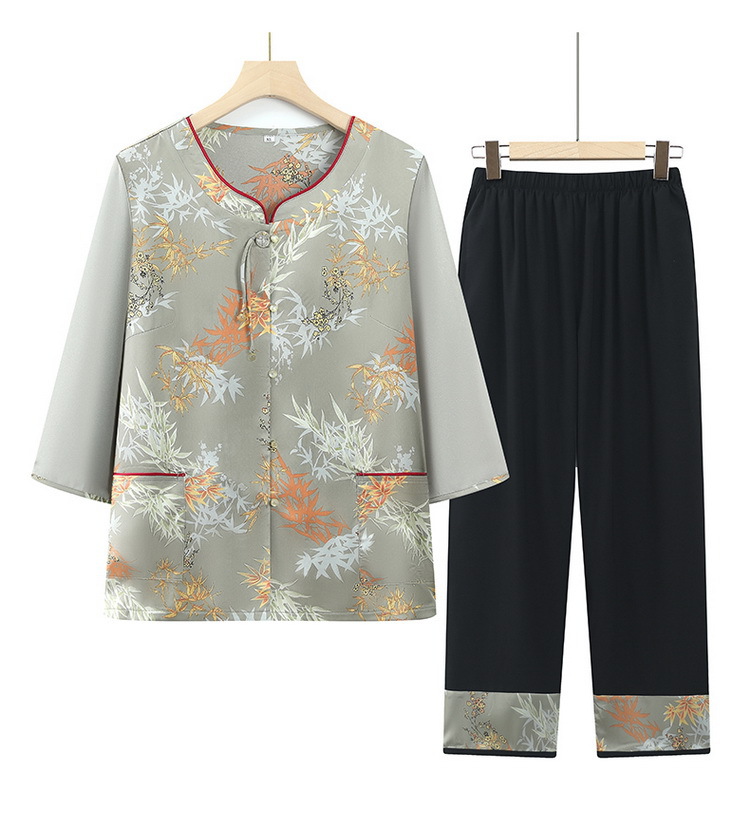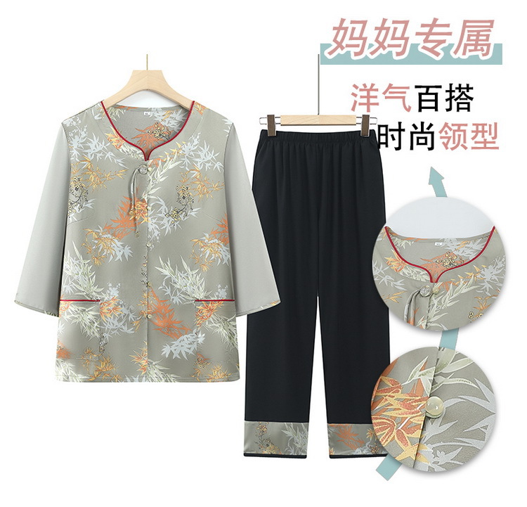 妈妈夏装七分袖洋气套装中老年女气质中袖新中式奶奶装开衫两件套