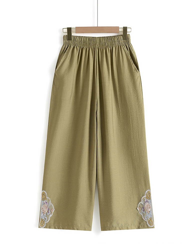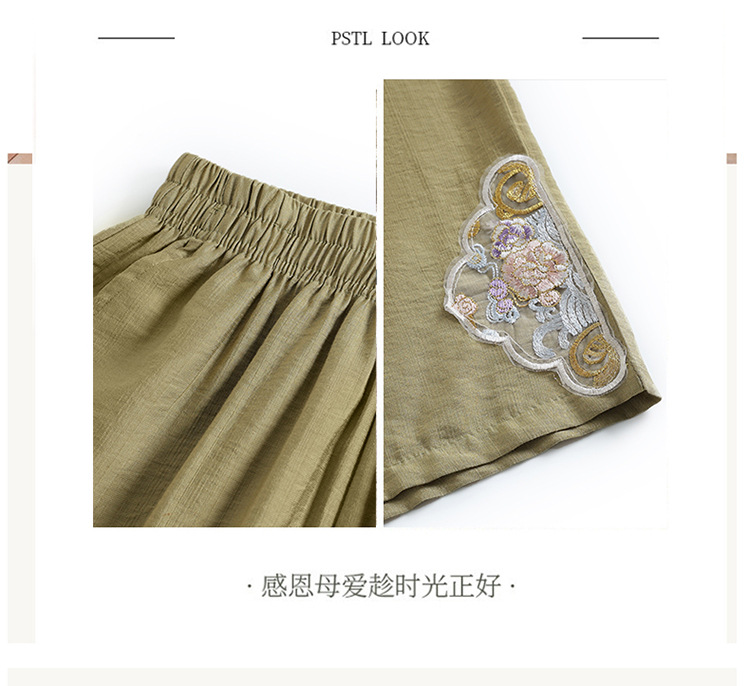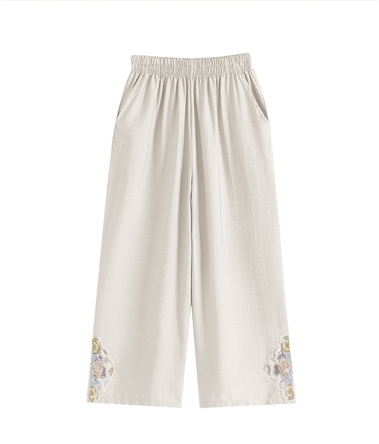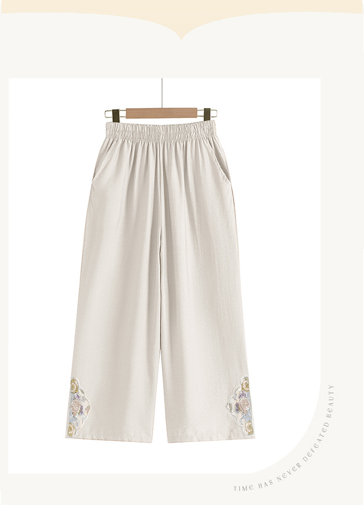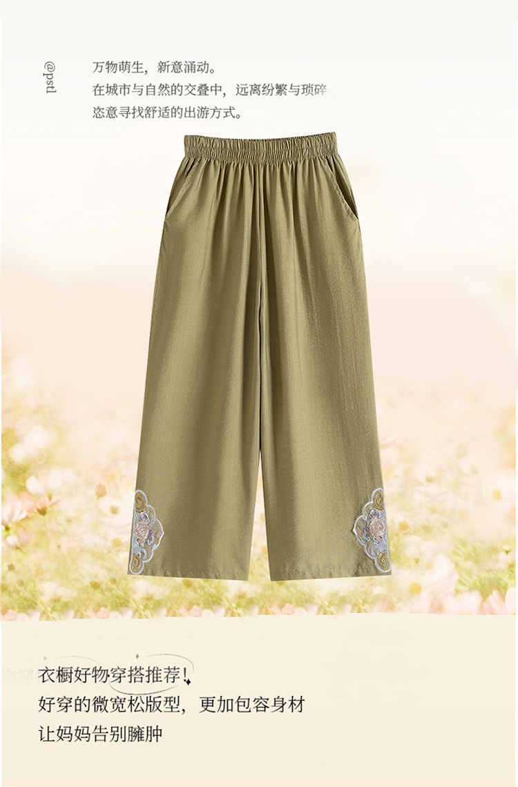 阔腿裤女夏季薄款妈妈装国风裤子中老年女士直筒裤宽松绣花九分裤